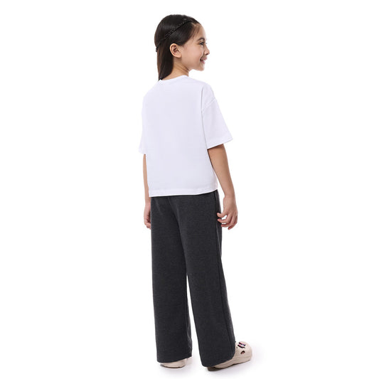 2 Pc Set with Slogan Print Stylish Top and Flared Solid Leggings