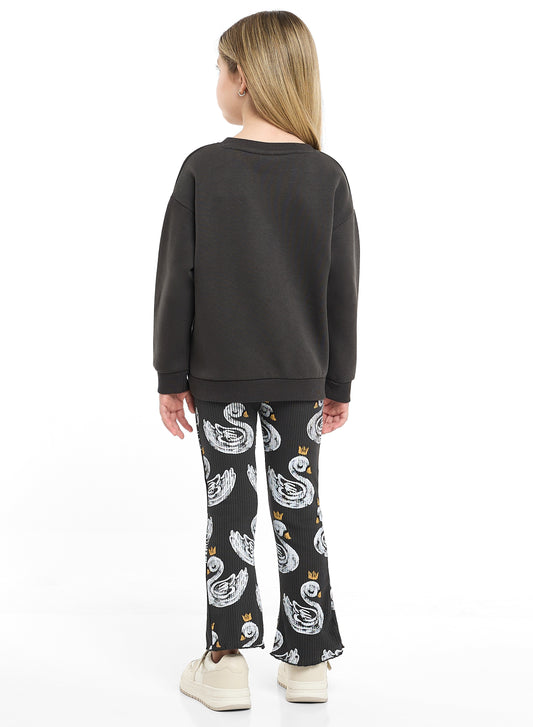 Girls Crowned Swan Fleece Tracksuit – Black 2-Piece Set