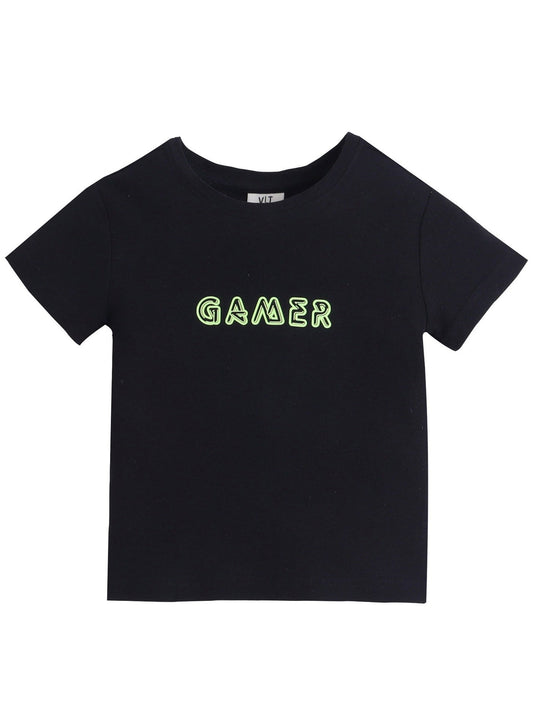 Junior Boys Black 'GAMER' Printed T-Shirt (2-9Y)