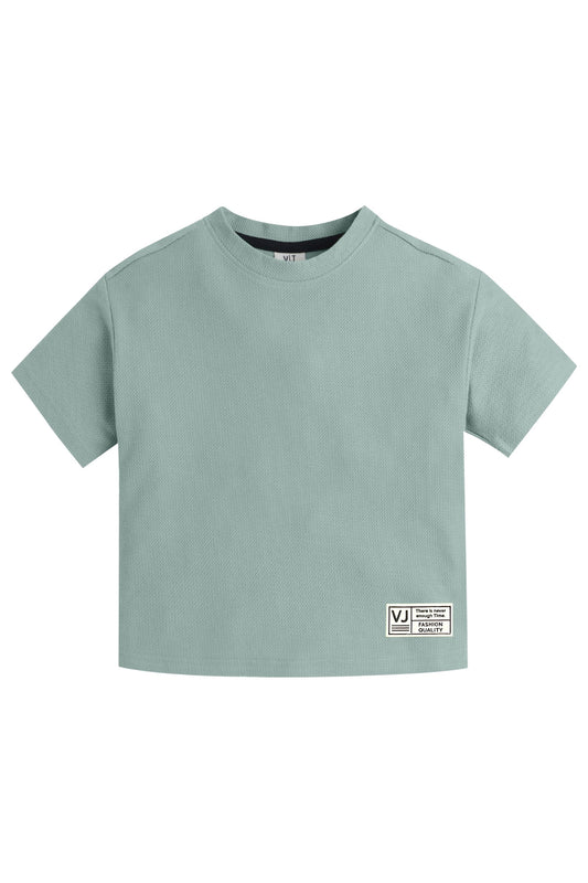 Junior Boys Textured Cotton T-Shirt - Olive Green