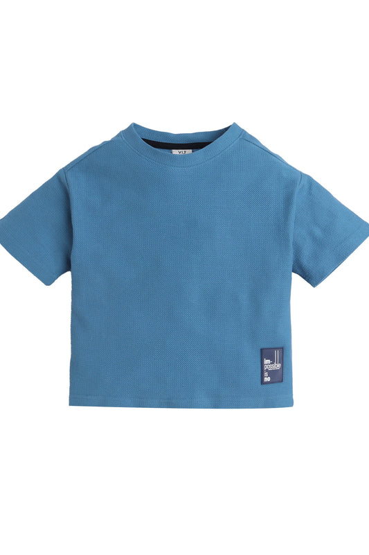 Junior Boys Textured Cotton T-Shirt - Rust Red