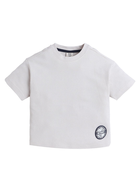 Victor & Jane Junior Boys Off-White Patch Detail Cotton T-Shirt