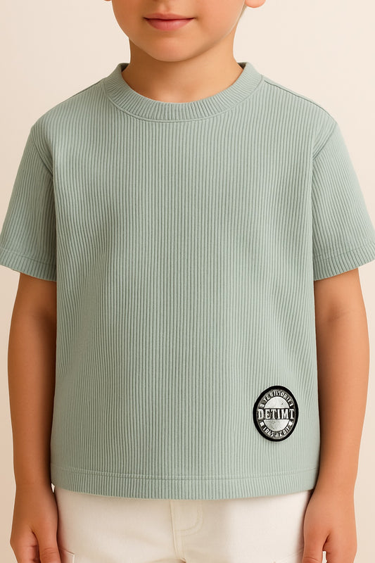 Junior Boys Ribbed Cotton T-Shirt - Light Olive