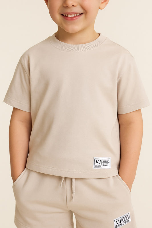 Boys Cotton Interlock Tee & Shorts Set – Sand
