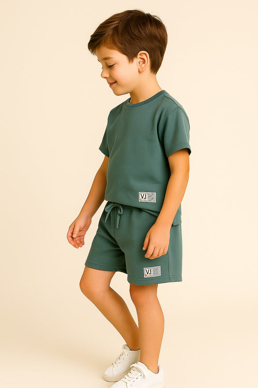 Boys Cotton Interlock Tee & Shorts Set – Sage Green