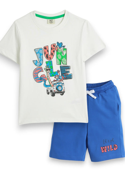 Victor and Jane JR Boys' 2PC Set – Jungle Safari & Day Adventure Theme, White Colour, Comfortable for Summer Wear, 2-3YRS