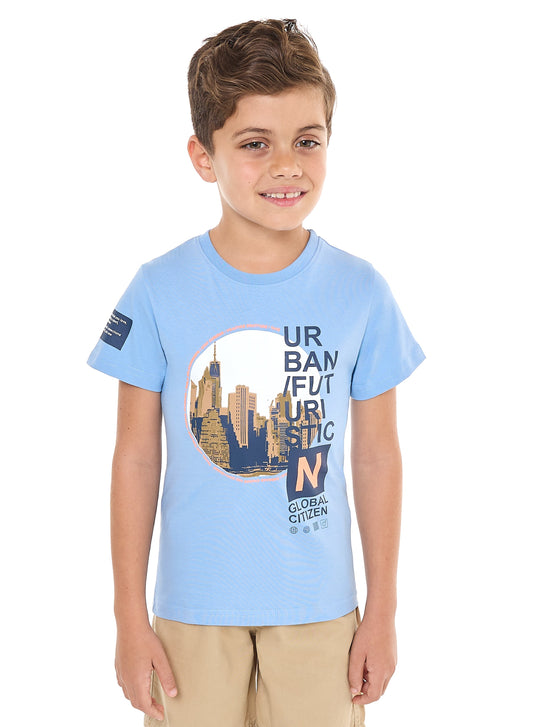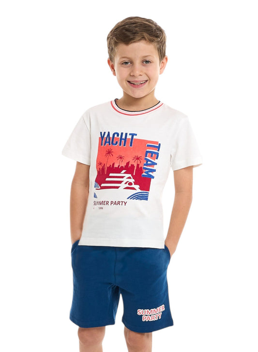 Victor and Jane Boys' 2 Piece Set with Matching Tshirt And Slogan Print Shorts with Elasticated Waist