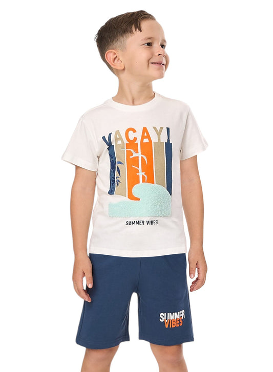Victor and Jane Boys' 2PC Set – Summer Vibes & Beach Days -Off White and Blue