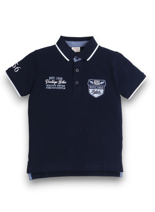 Victor & Jane Boys' Polo T-Shirt – Blue color with Embroidered Label Detail