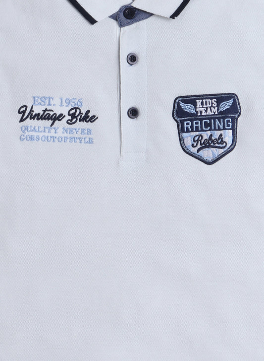 Victor & Jane Boys' Polo T-Shirt – White colour with Embroidered Label detail