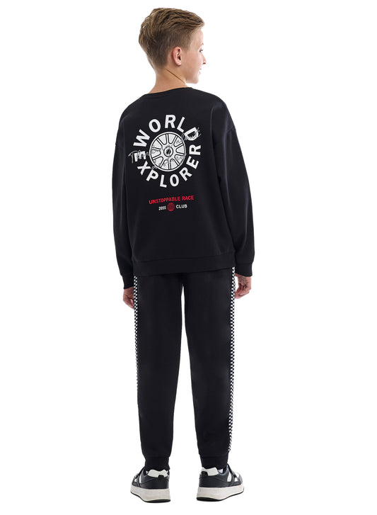 Boys Black Sweatshirt & Jogger Set with Printed Patch Design