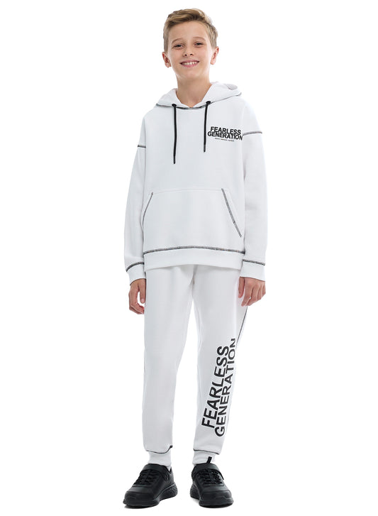 Boys Relaxed Fit Off-White Hoodie & Joggers Set |