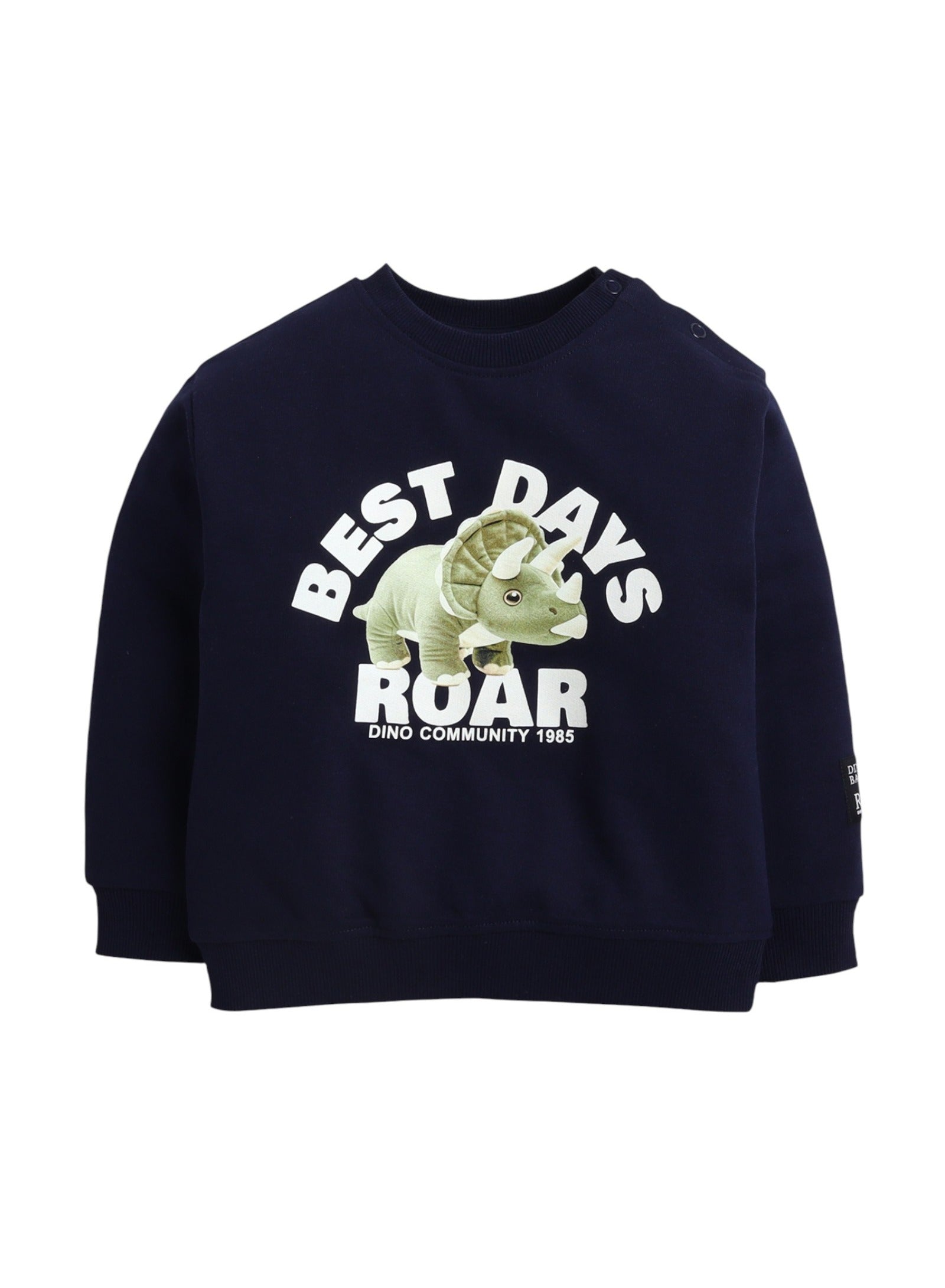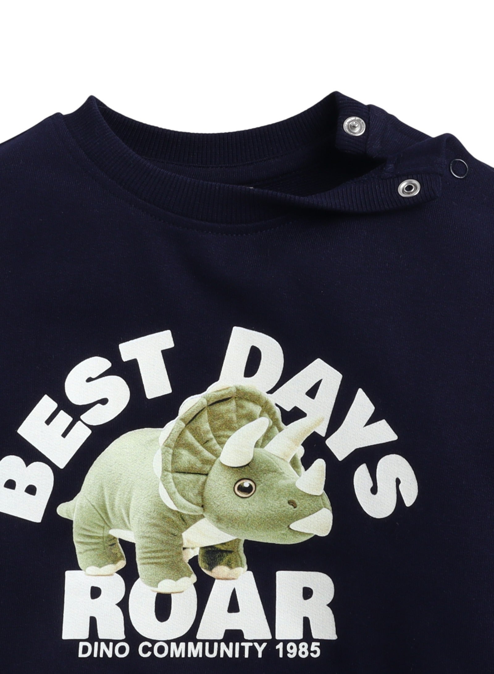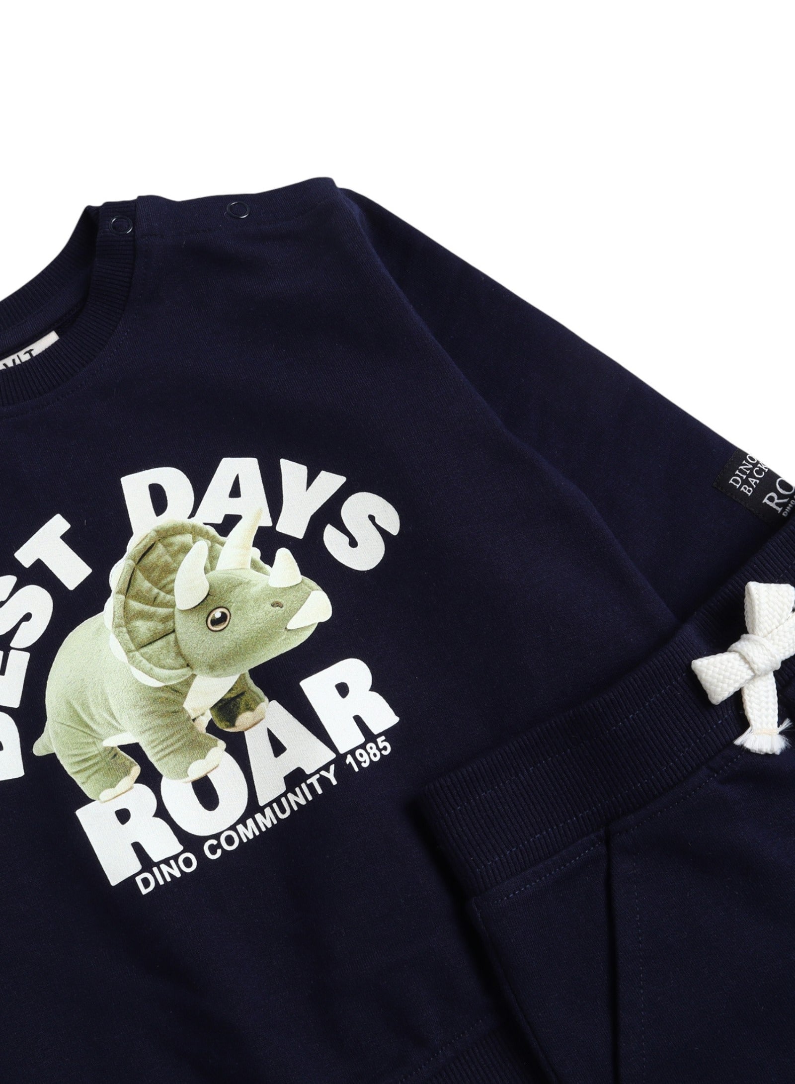 Infant Boys “Best Days Roar” Fleece Tracksuit – Navy 2-Piece Set