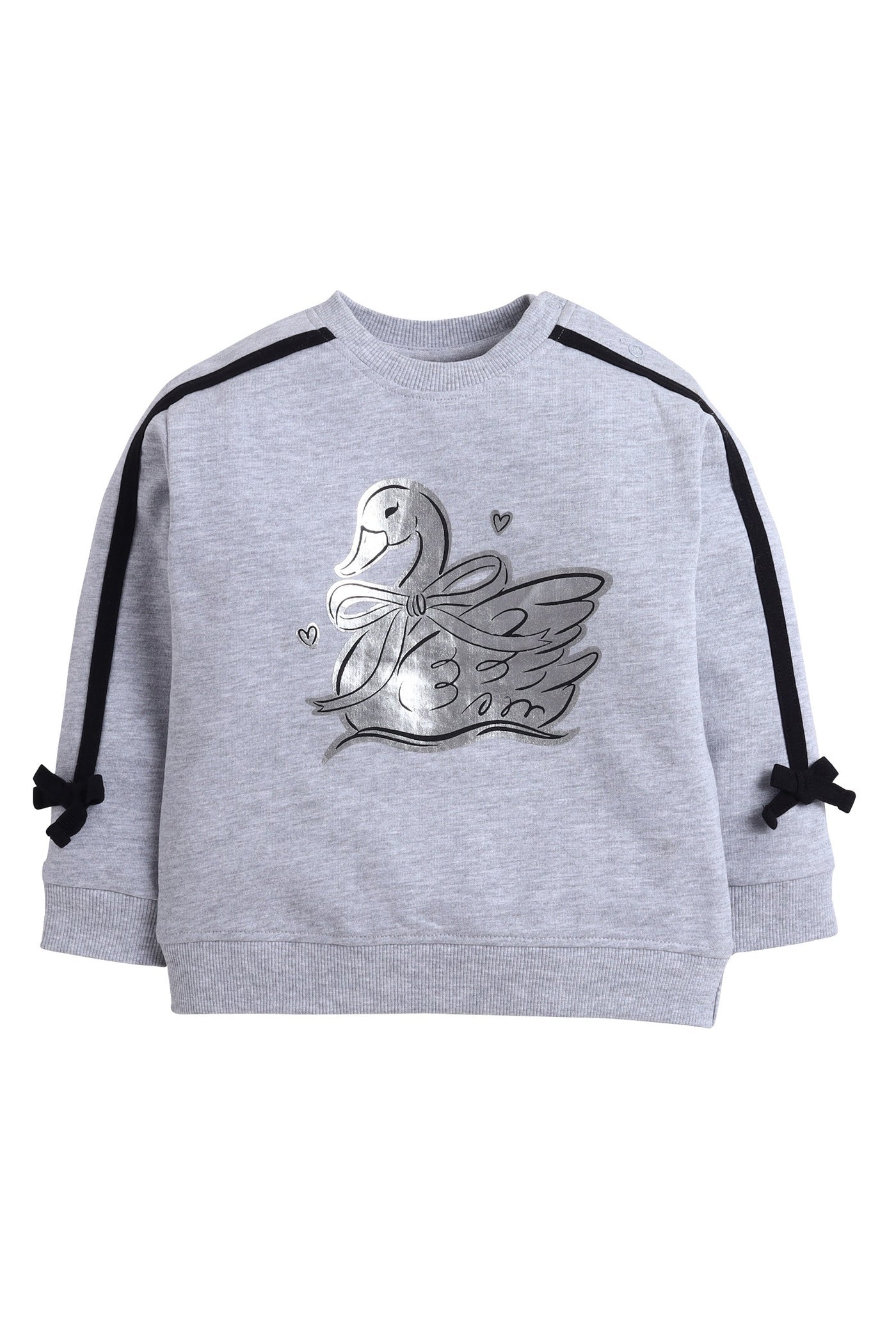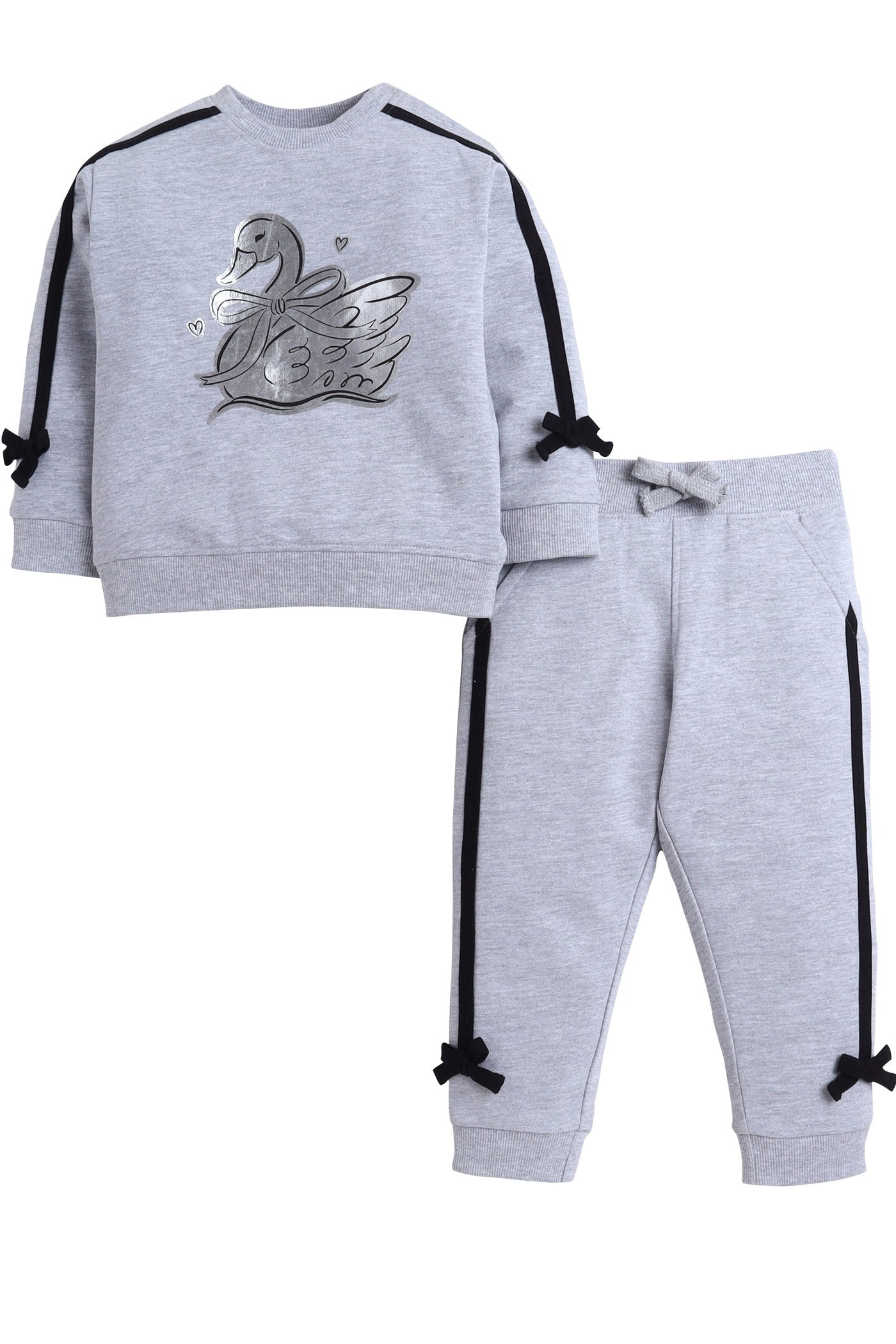 Baby Girl Swan Embroidered Fleece Tracksuit – Grey 2-Piece Set