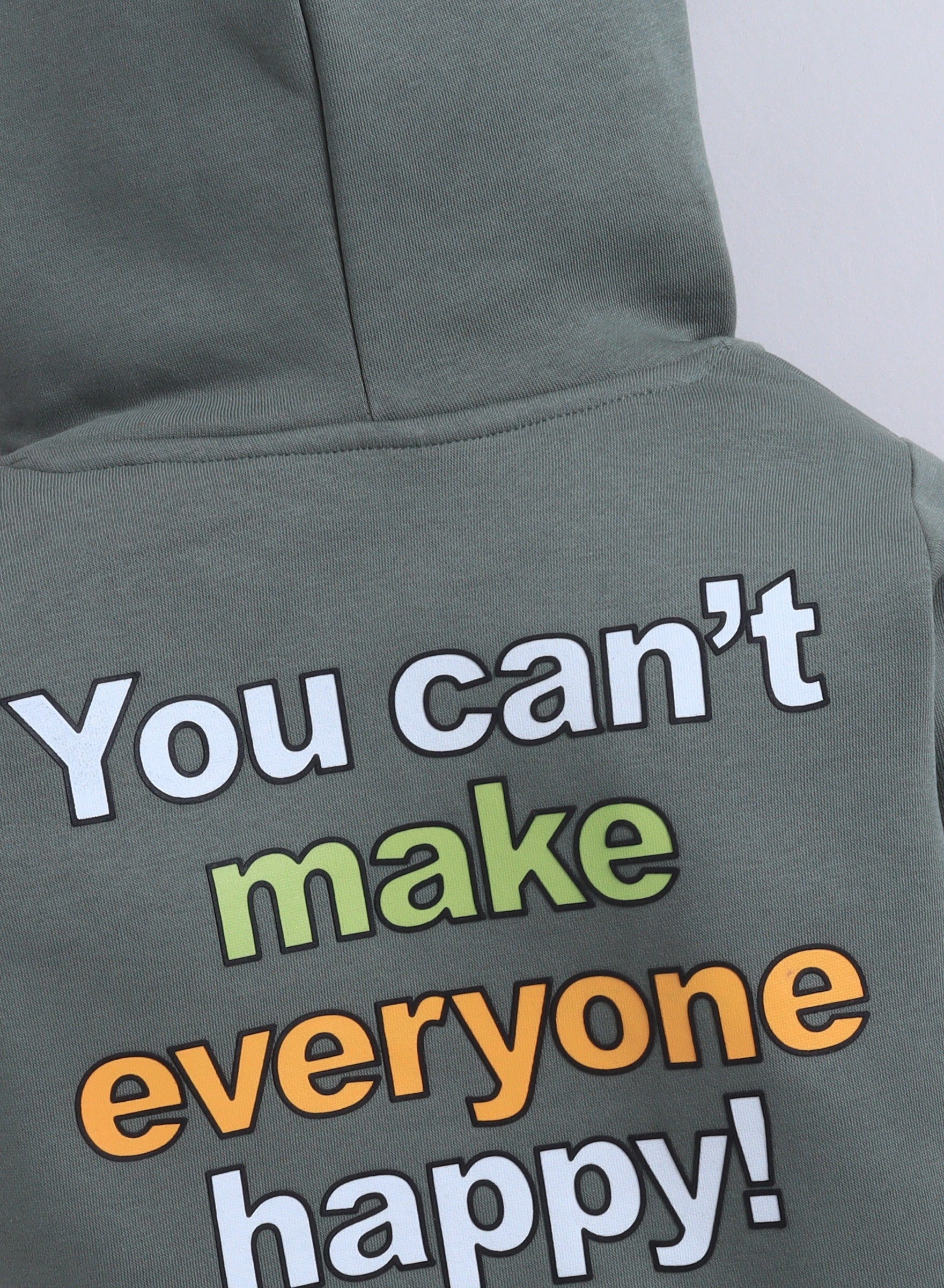 Boys' Olive Green Hoodie with “You Can’t Make Everyone Happy” Print