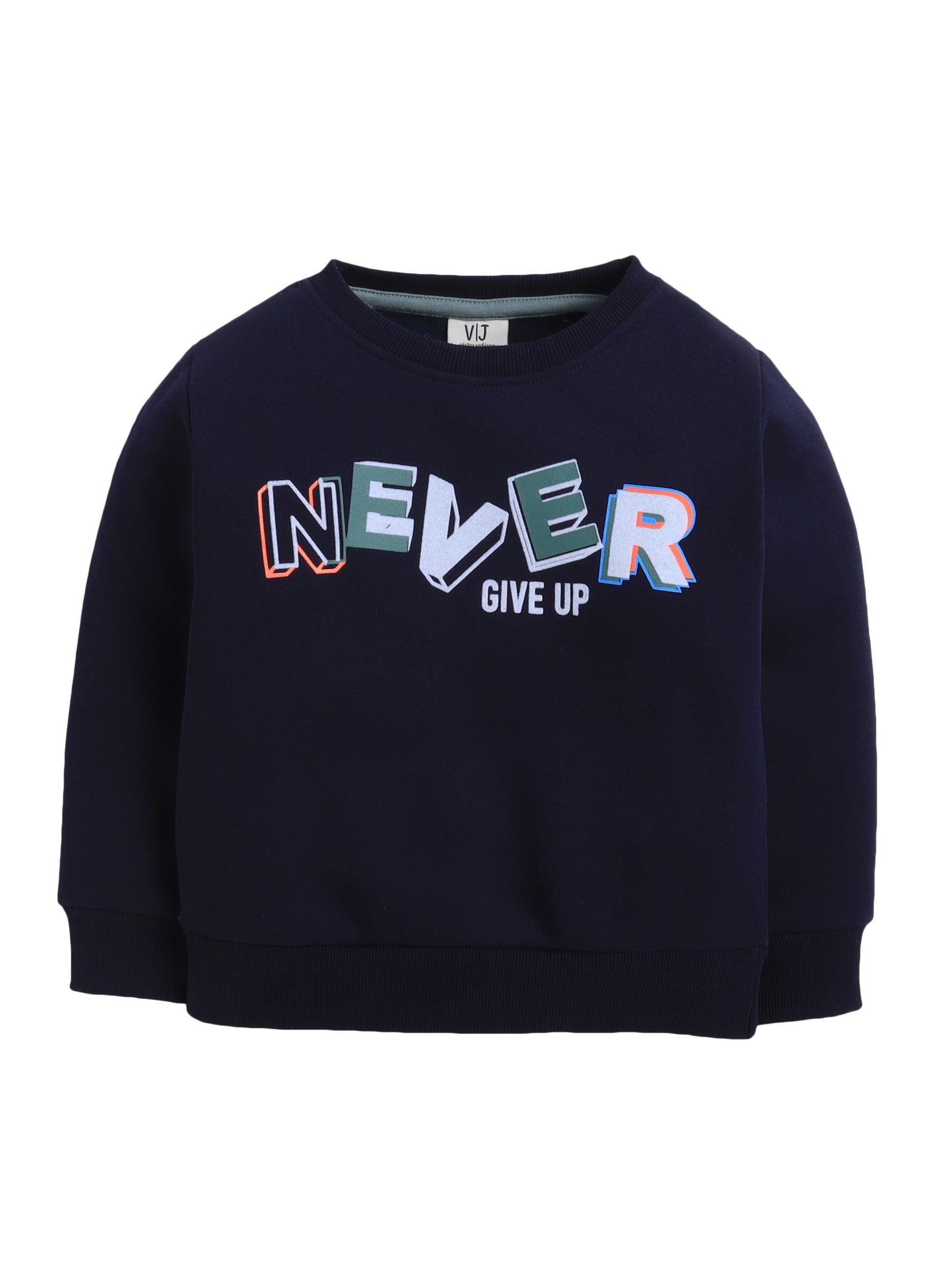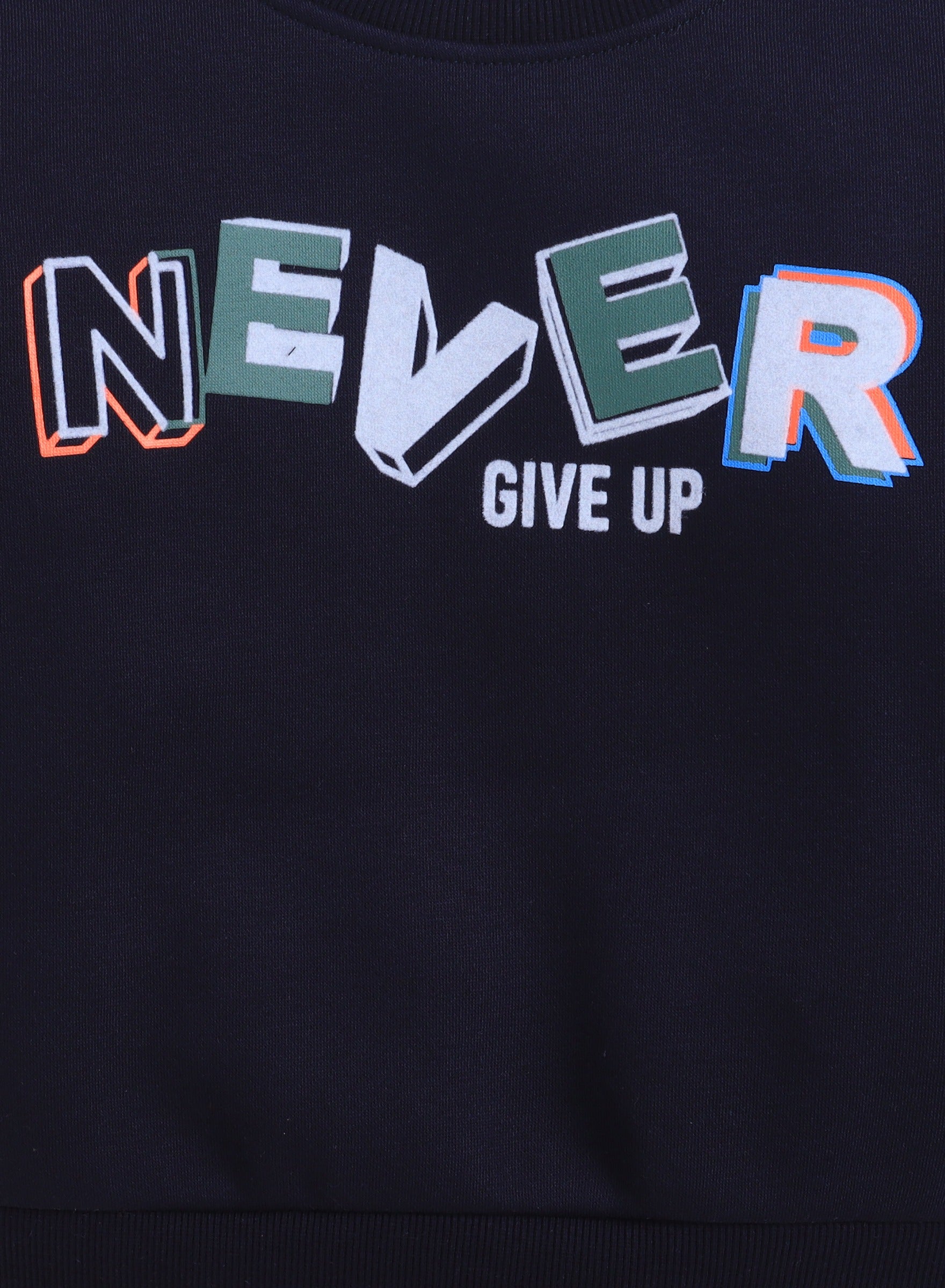 Boys' Navy "Never Give Up" Slogan Sweatshirt