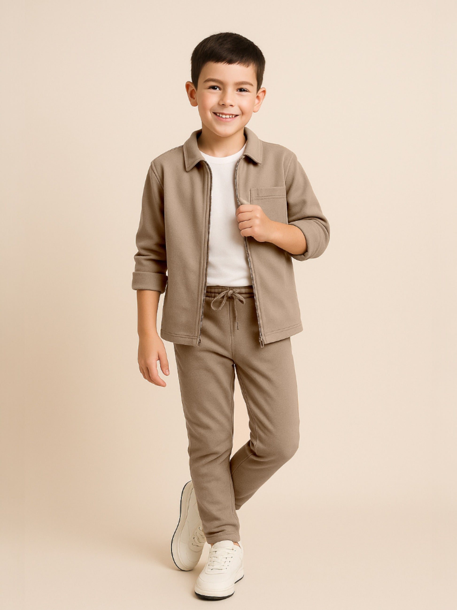 Boys’ Utility Jacket & Jogger Set – Beige