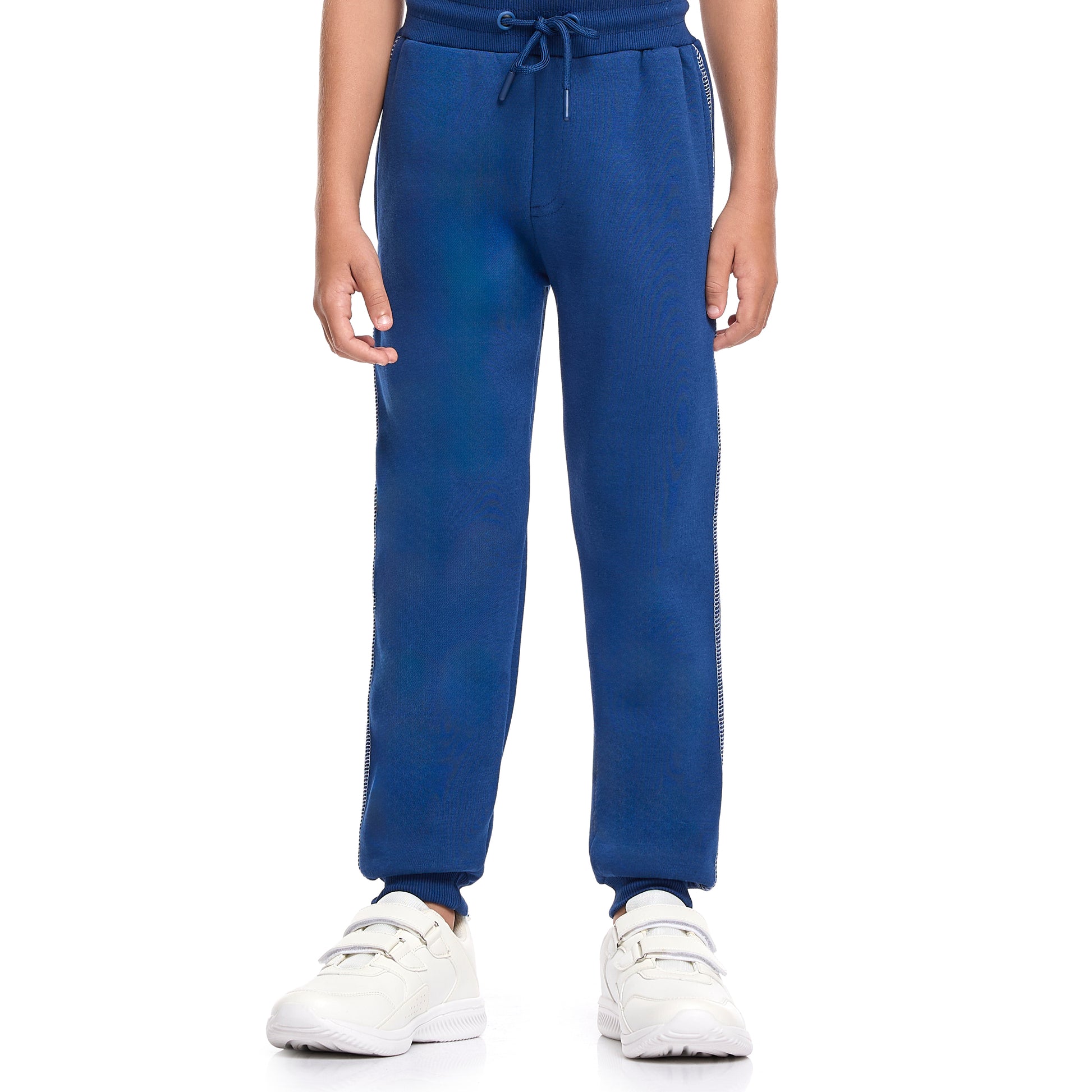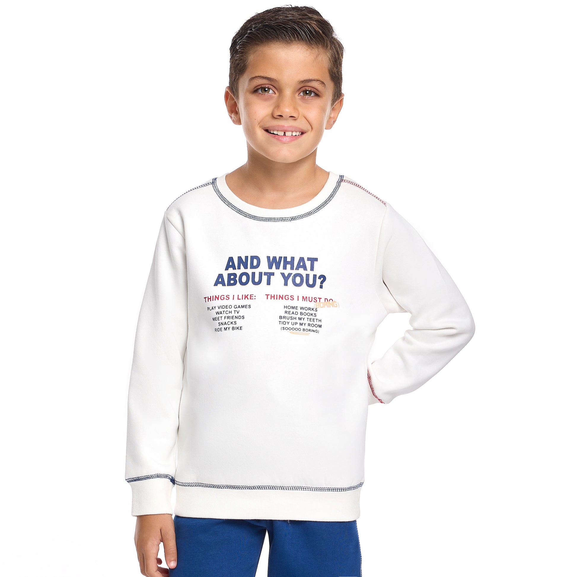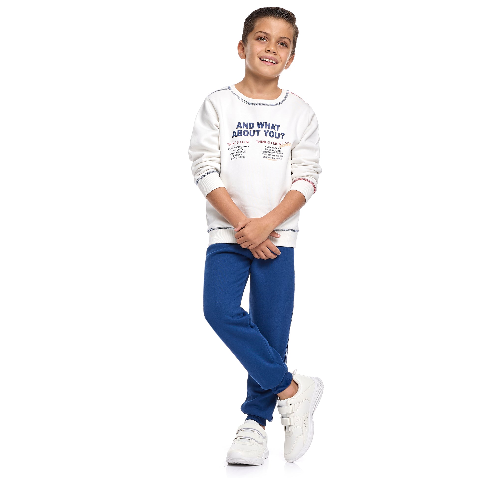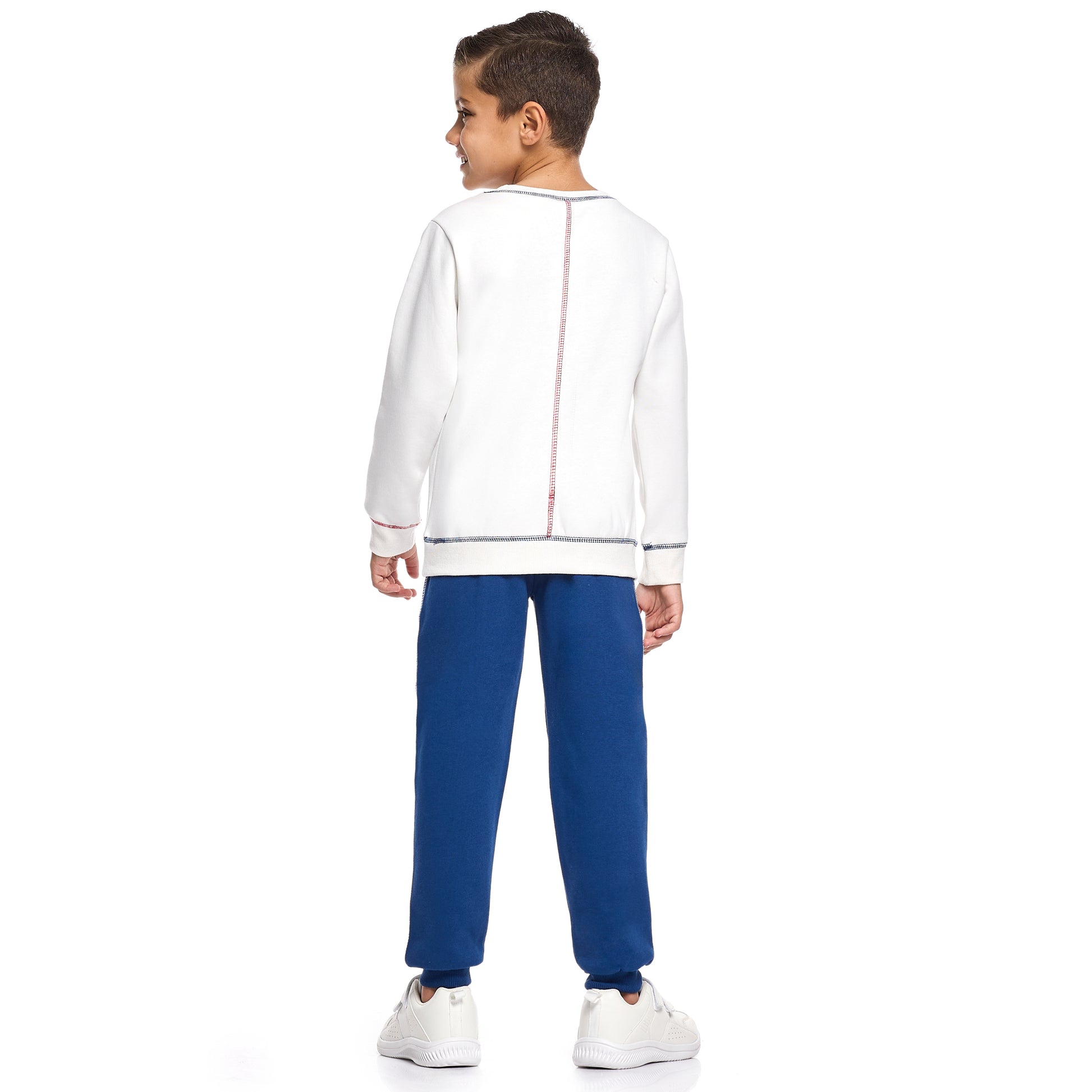 Boys Warm Cotton Fleece Set - White Long Sleeve Top & Navy Joggers