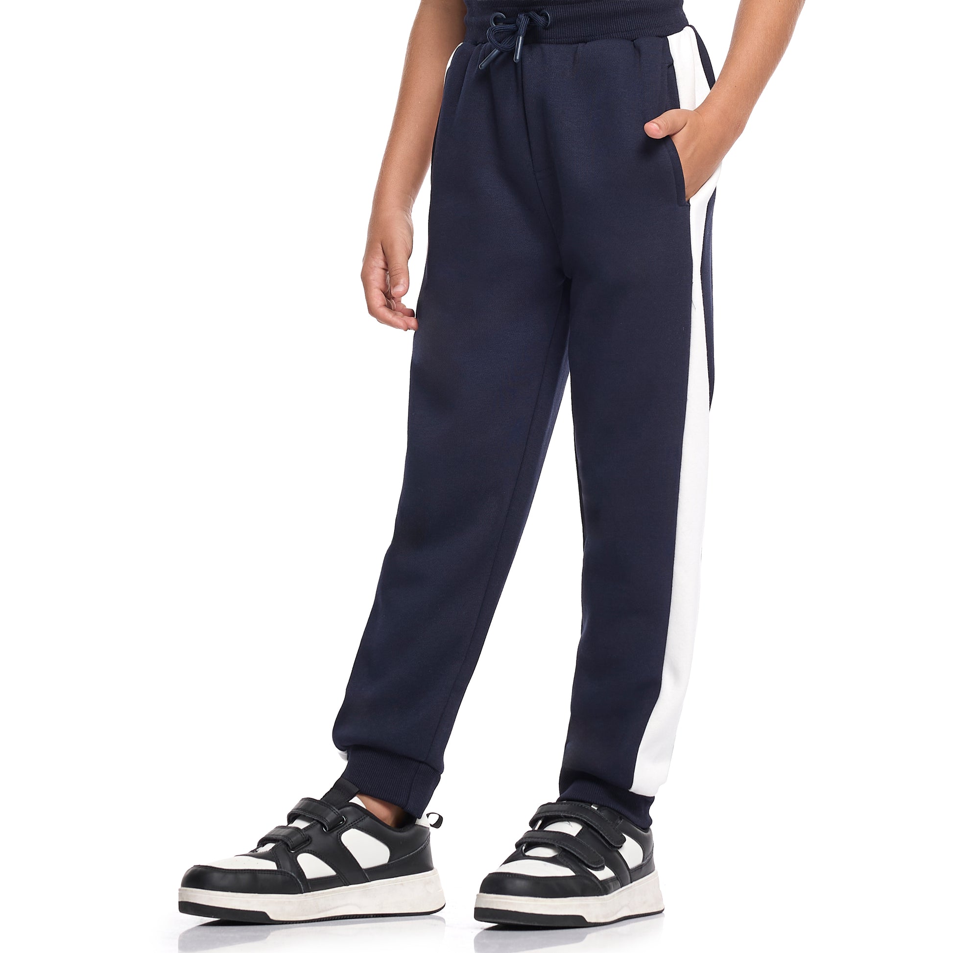 Boys Zip-Neck Colourblock Fleece Tracksuit - Navy & White