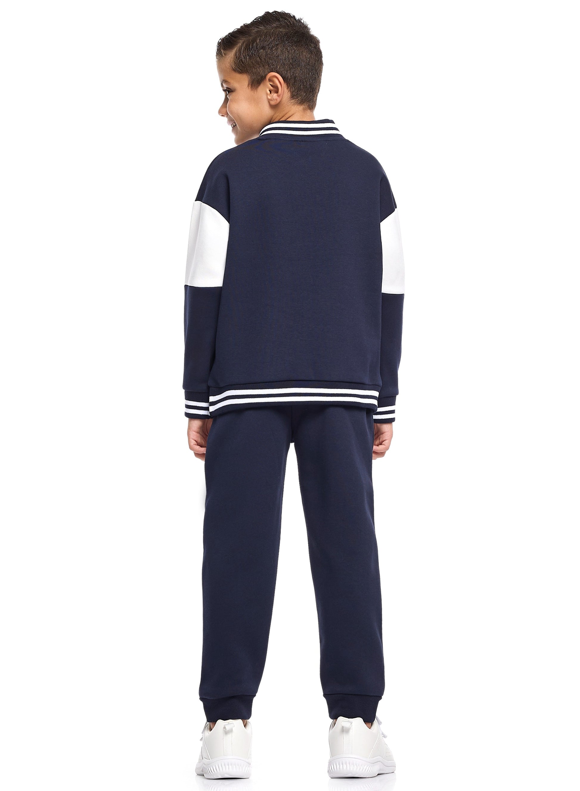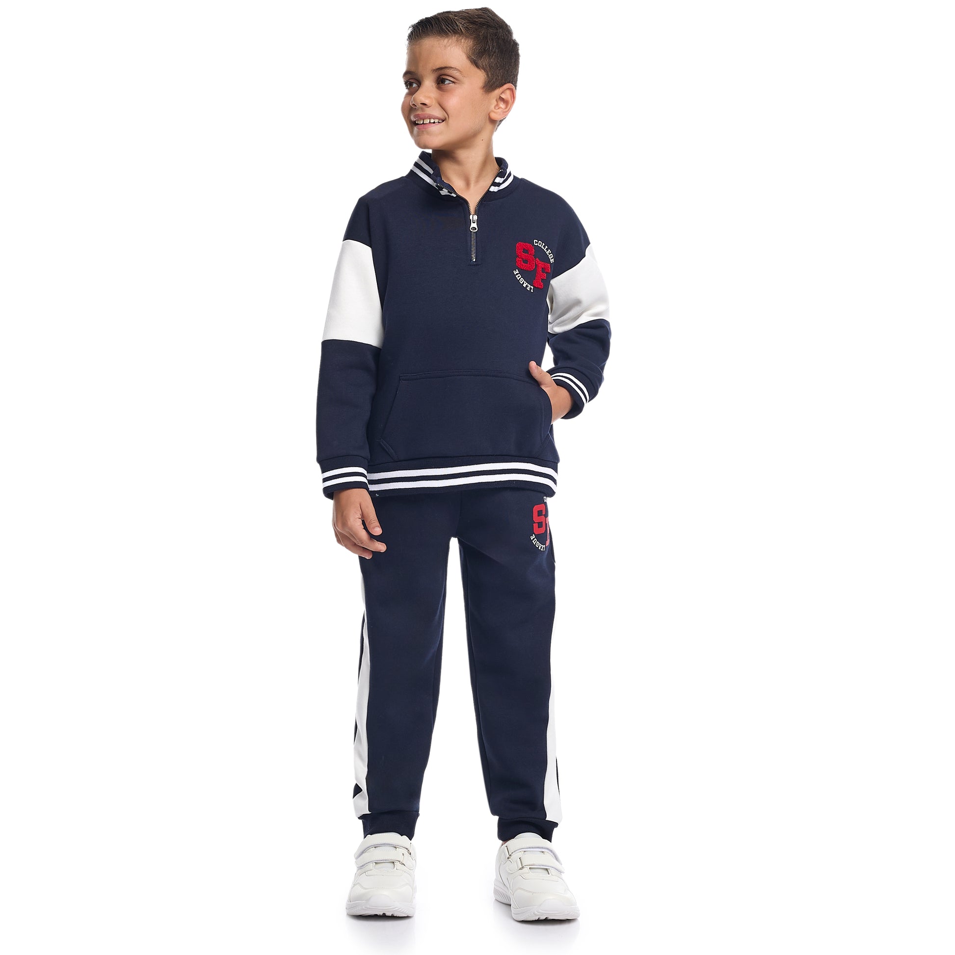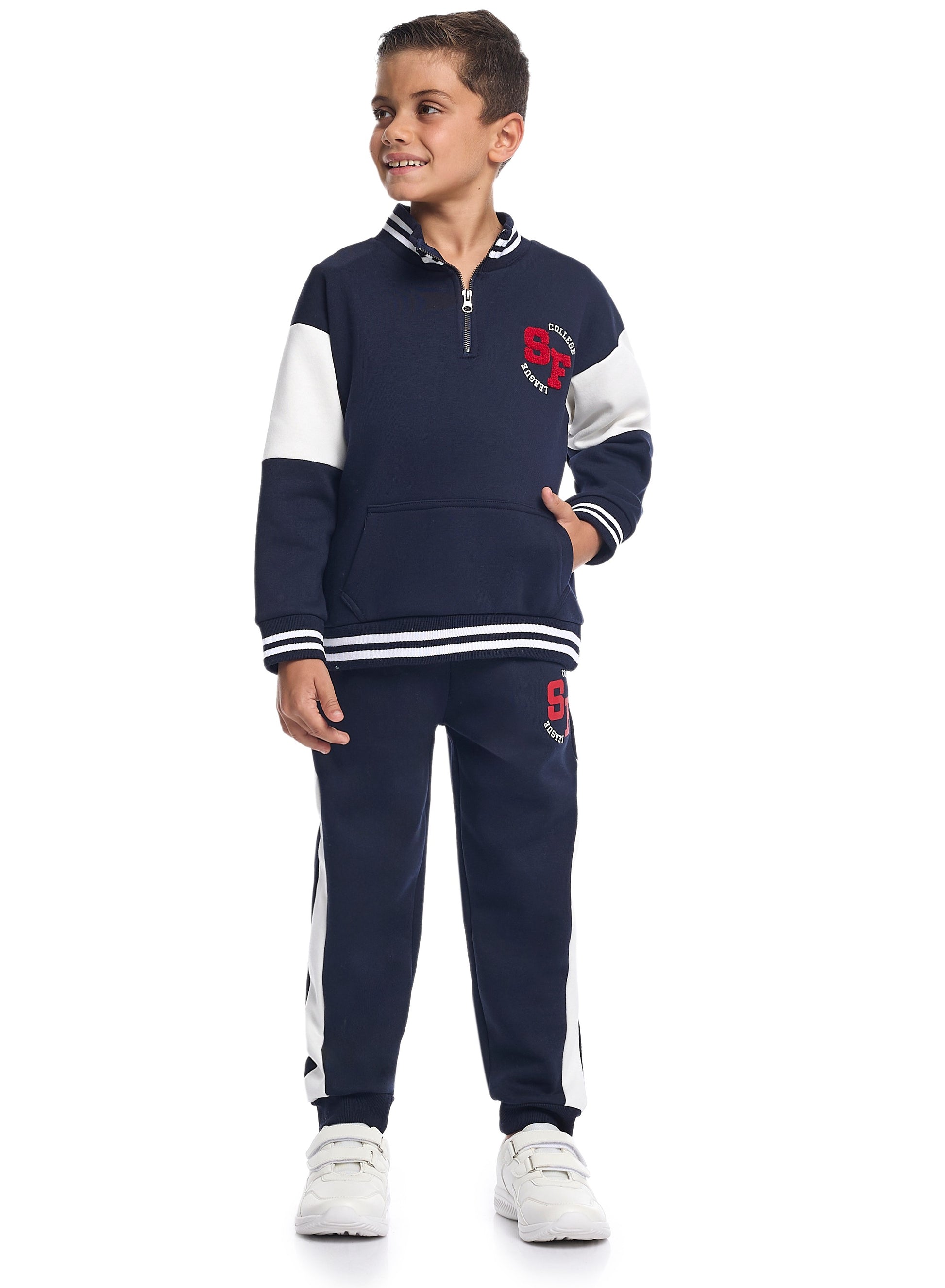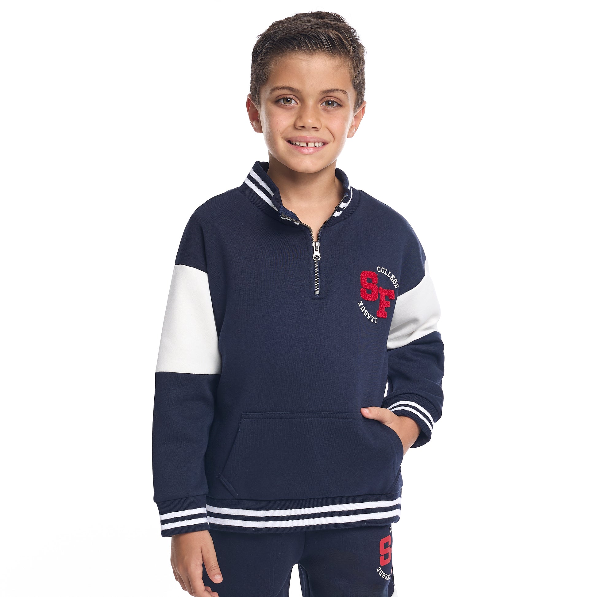 Boys Varsity Zip-Neck Fleece Tracksuit - Navy & White with SF Patch