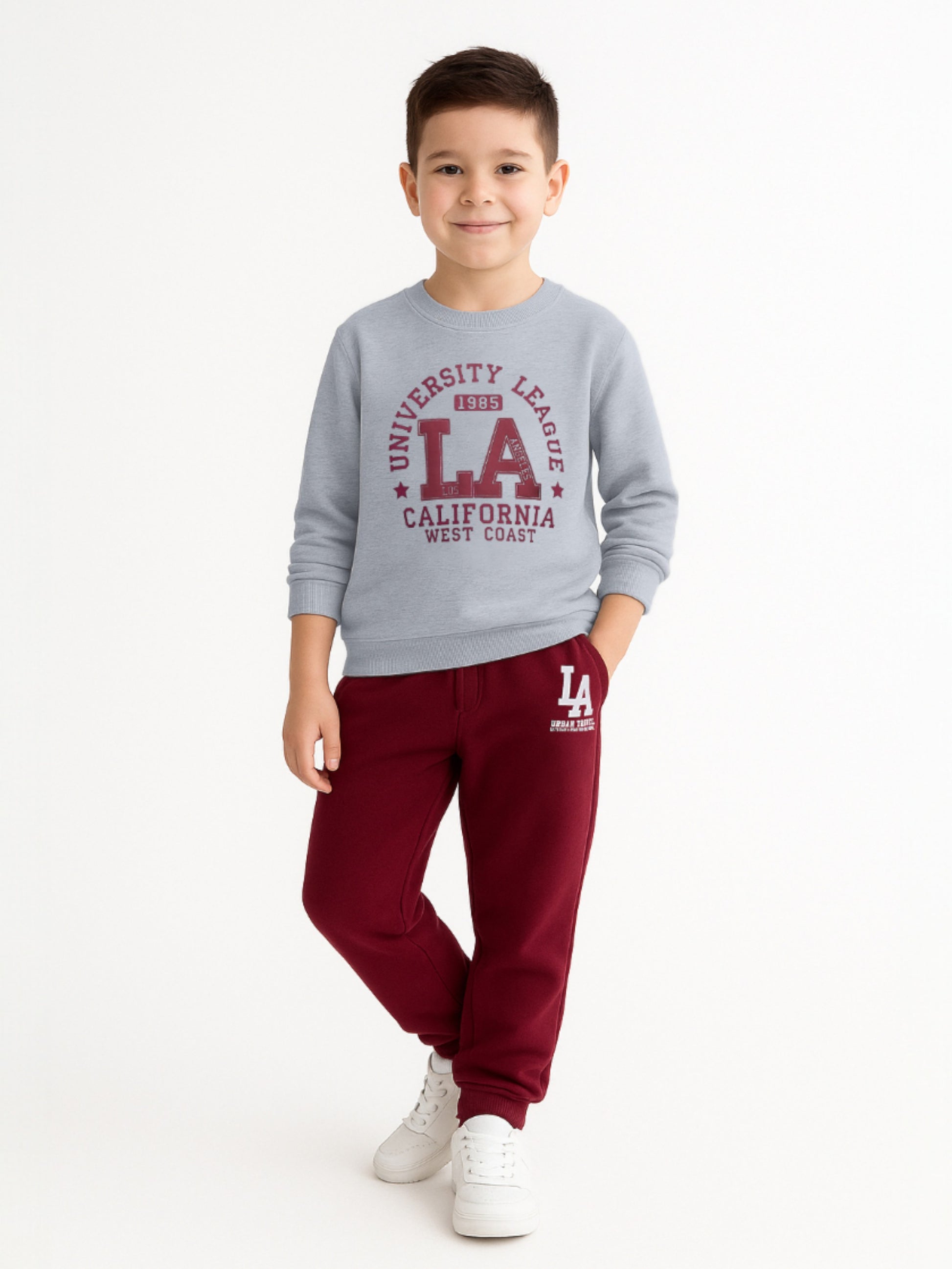 Bold varsity-style graphics – TEXAS 98 back print, LA on joggers