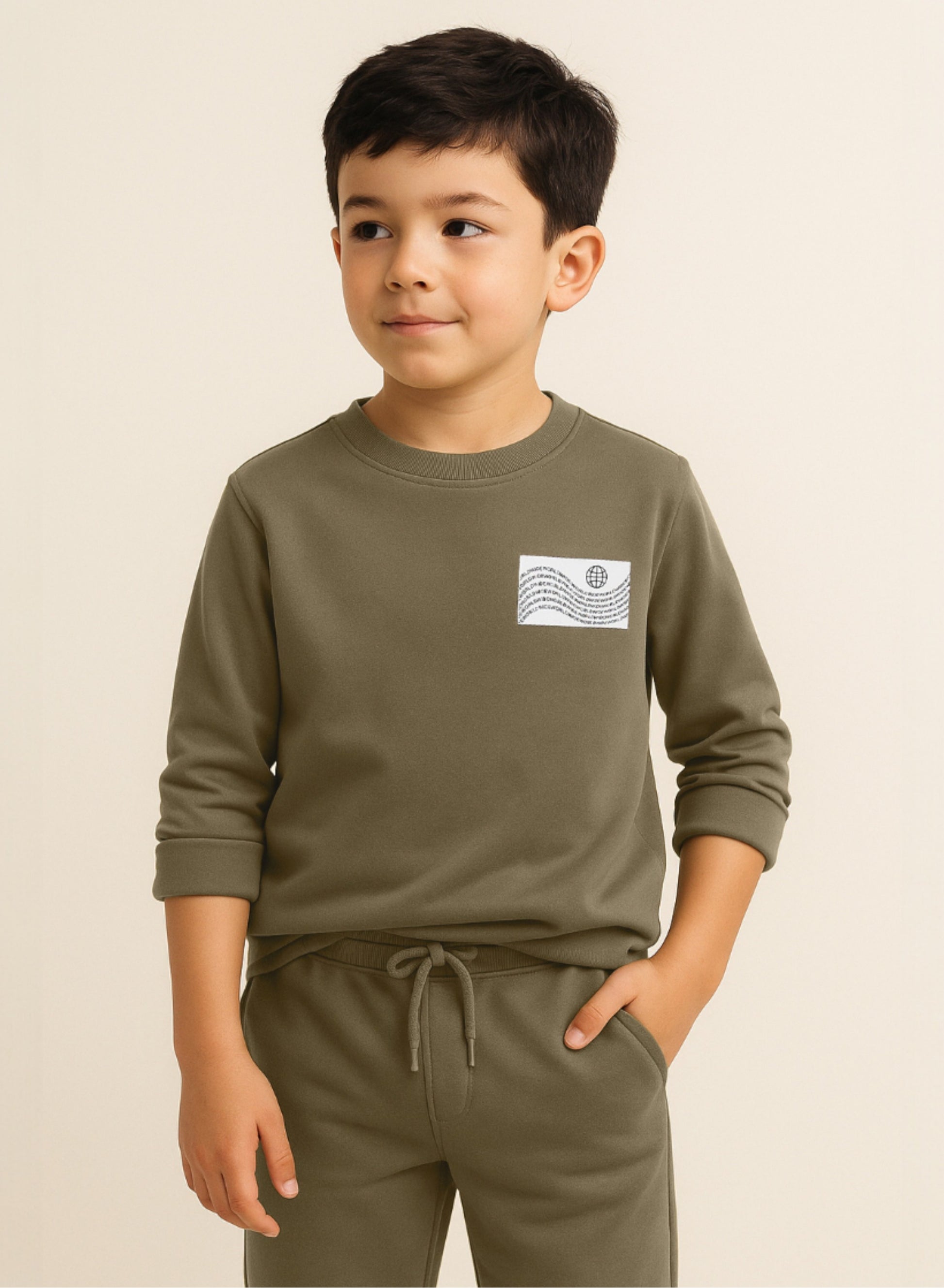 Boys Olive Green Printed Utility Fleece Tracksuit - Sweatshirt with Crossbody Bag Print