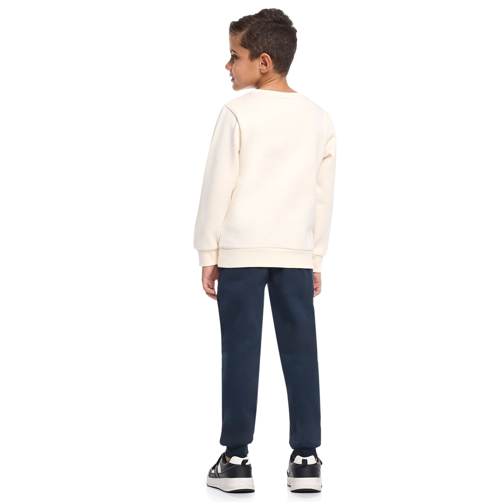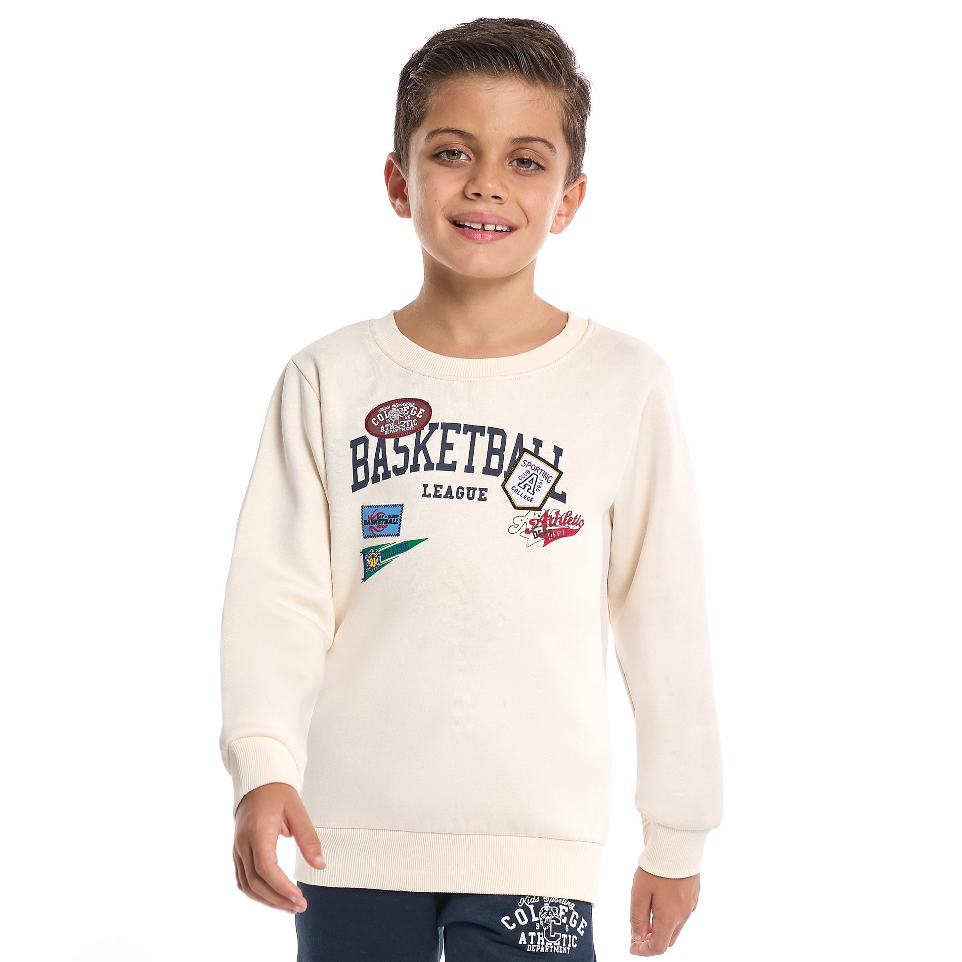 Boys’ Basketball League Fleece Set – Cream Sweatshirt & Navy Joggers