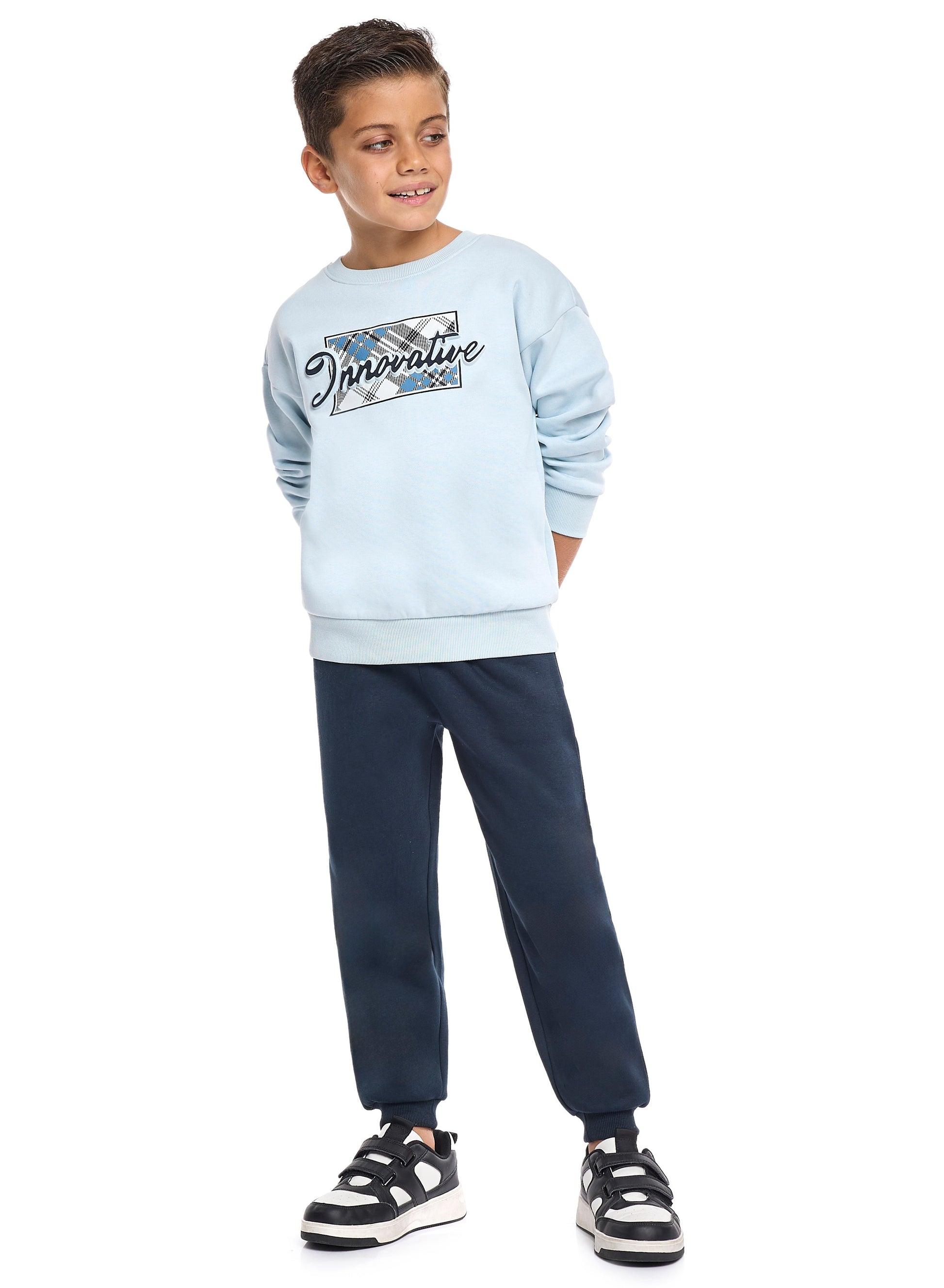 Boys’ Outdoor Style Tracksuit – Blue Fleece Adventure Top & Bottom Set
