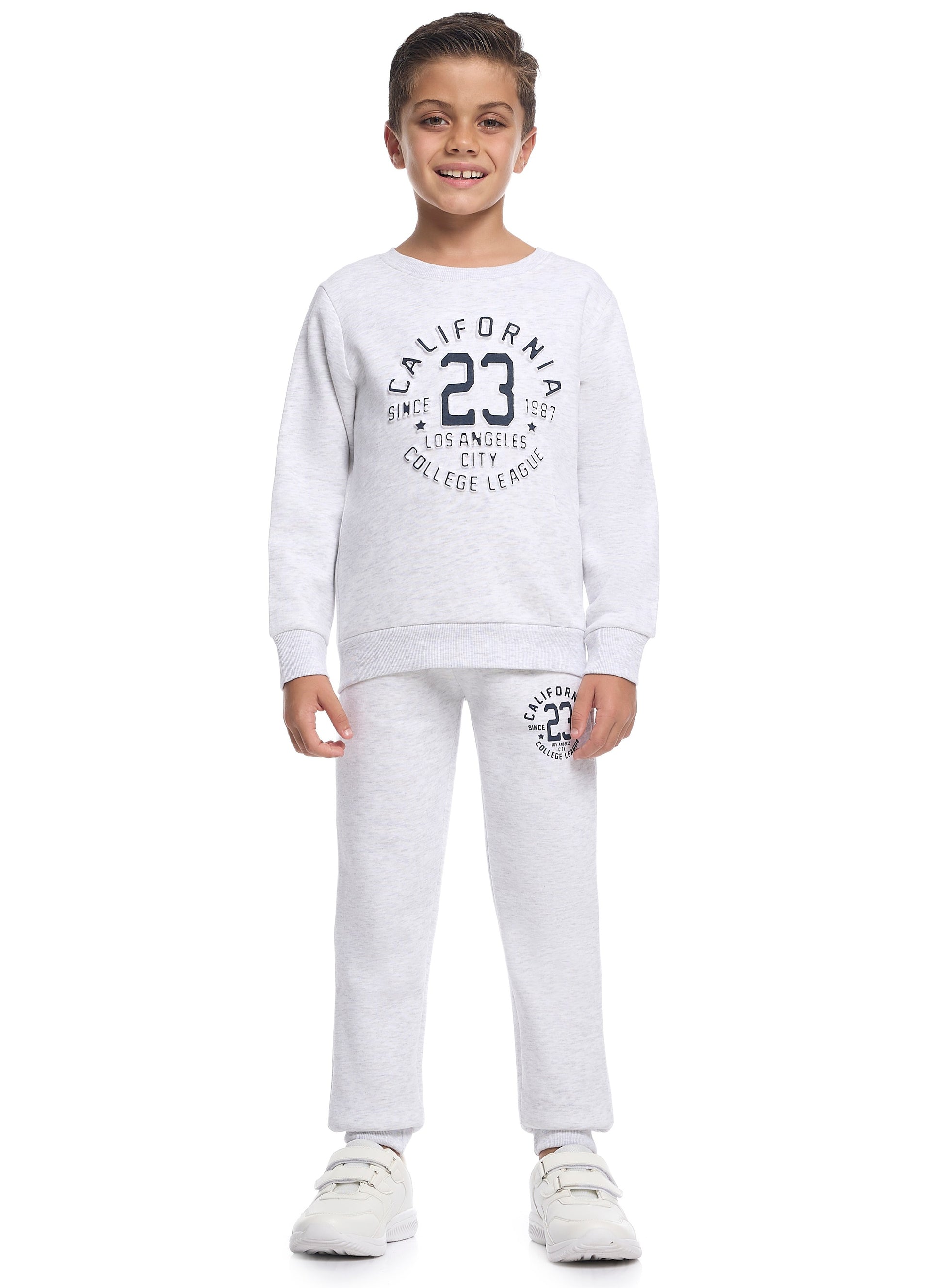 Boys’ Trendy Winter Co-ord Set – California Print in Soft Grey Melange