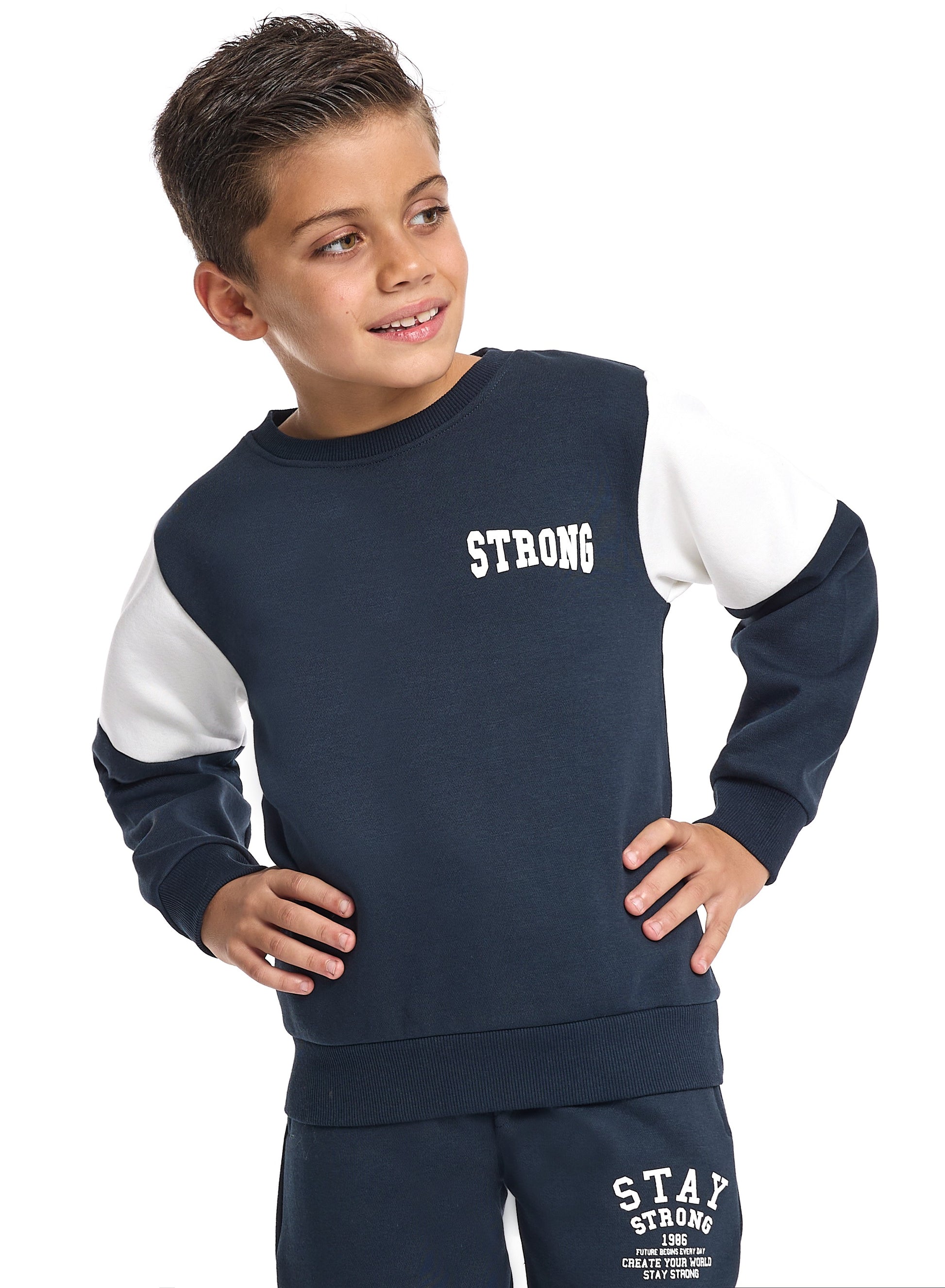 Boys’ Casual Winter Set – Navy Stay Strong Graphic Top & Bottom