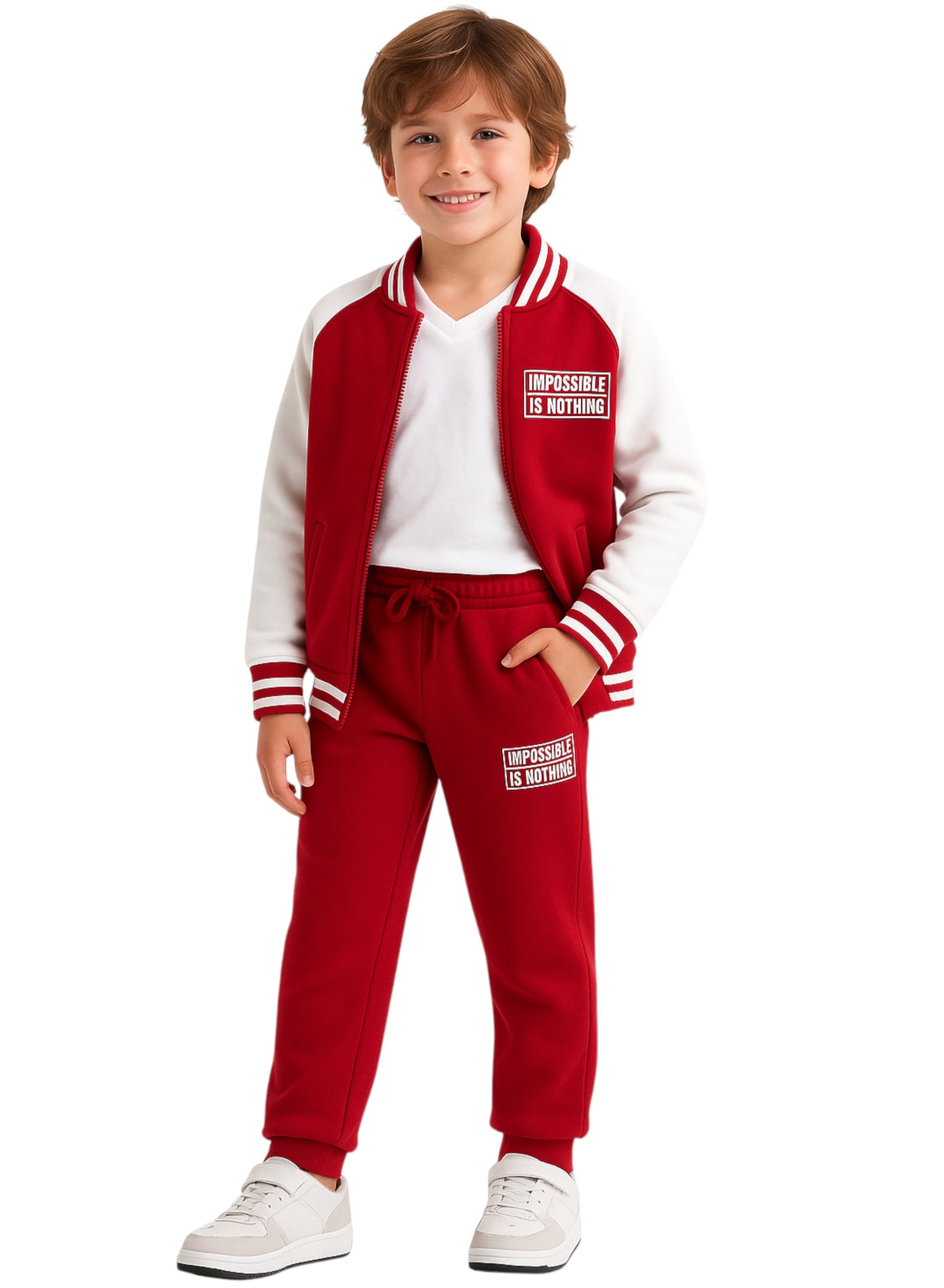 Boys' Trendy Red & White Sports Tracksuit – Break the Rule Print