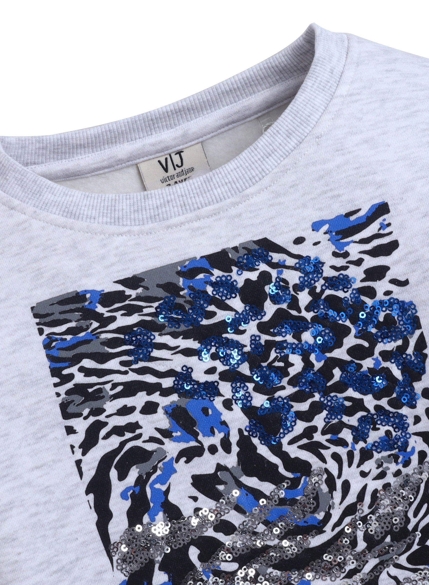Girls’ Animal Print Patch Sweatshirt - Grey - Relaxed Fit