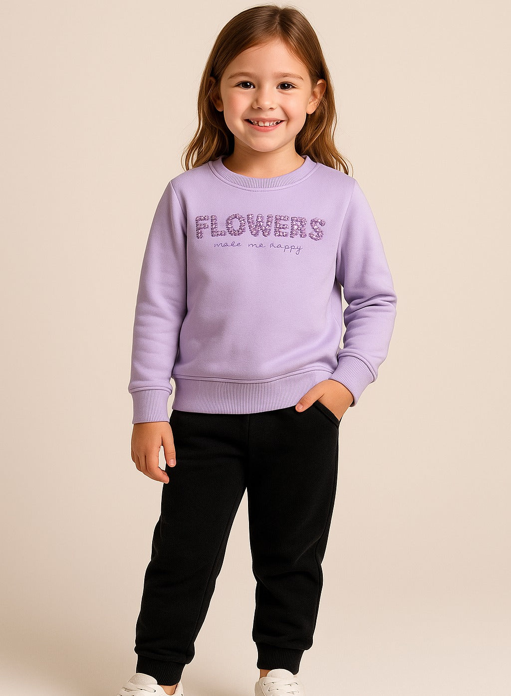 Girls' - “Flowers Make Me Happy” Sweatshirt