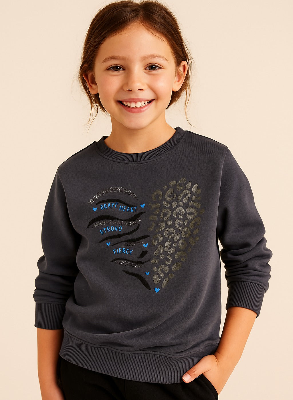 Girls' – Heart Graphic Sweatshirt | 100% Cotton,