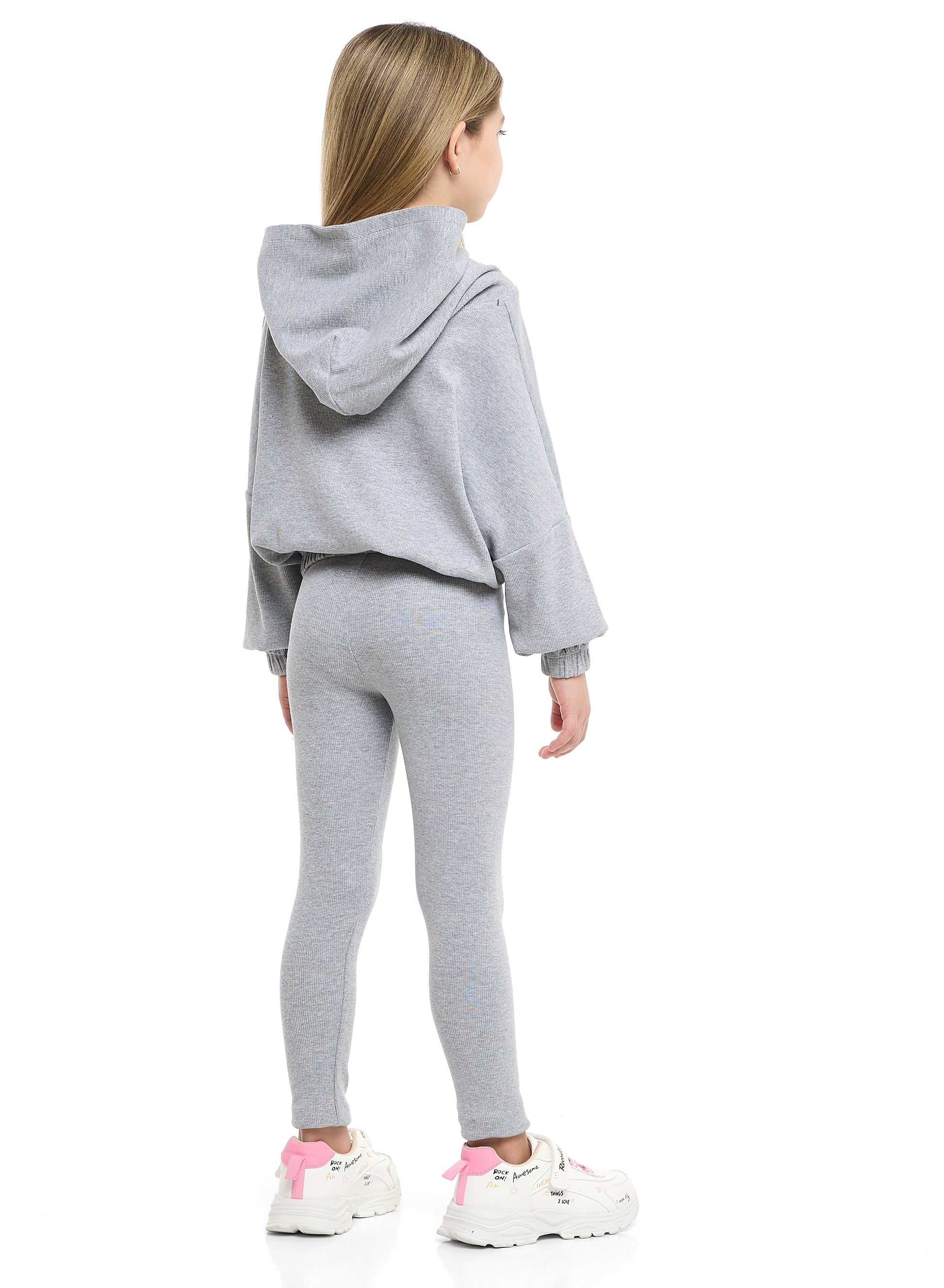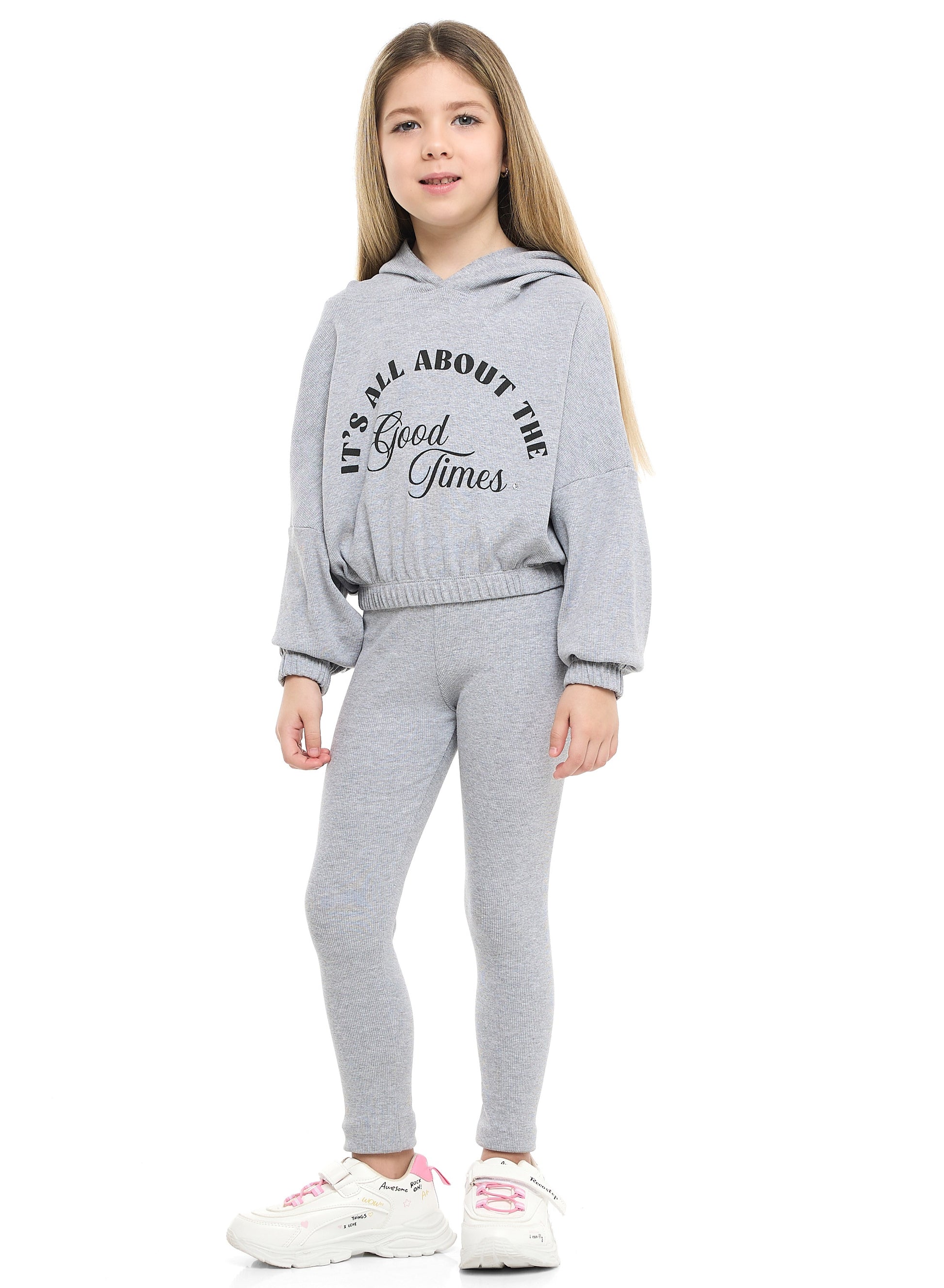 Girls Good Vibes Fleece Tracksuit – Light Grey 2-Piece Set