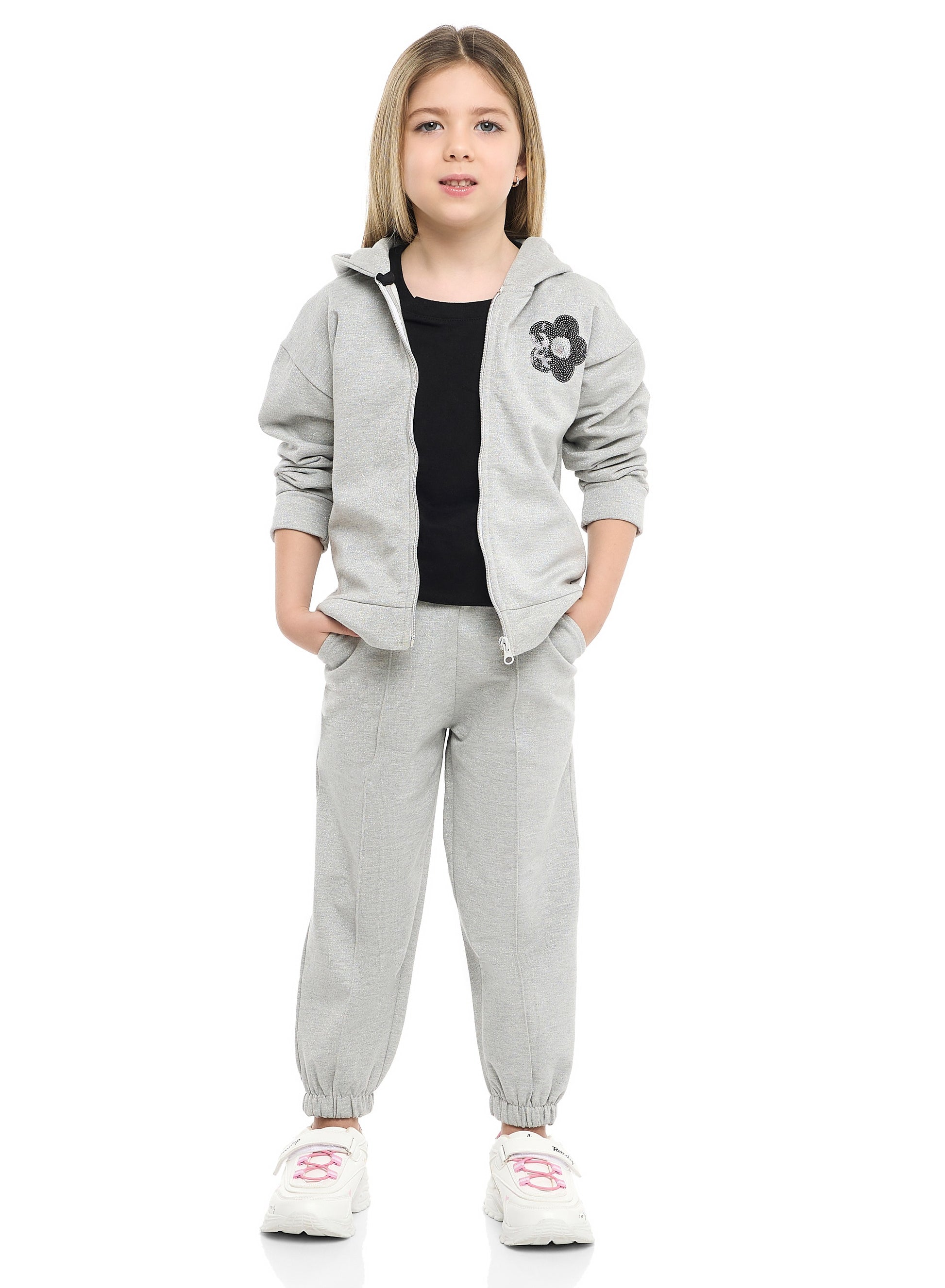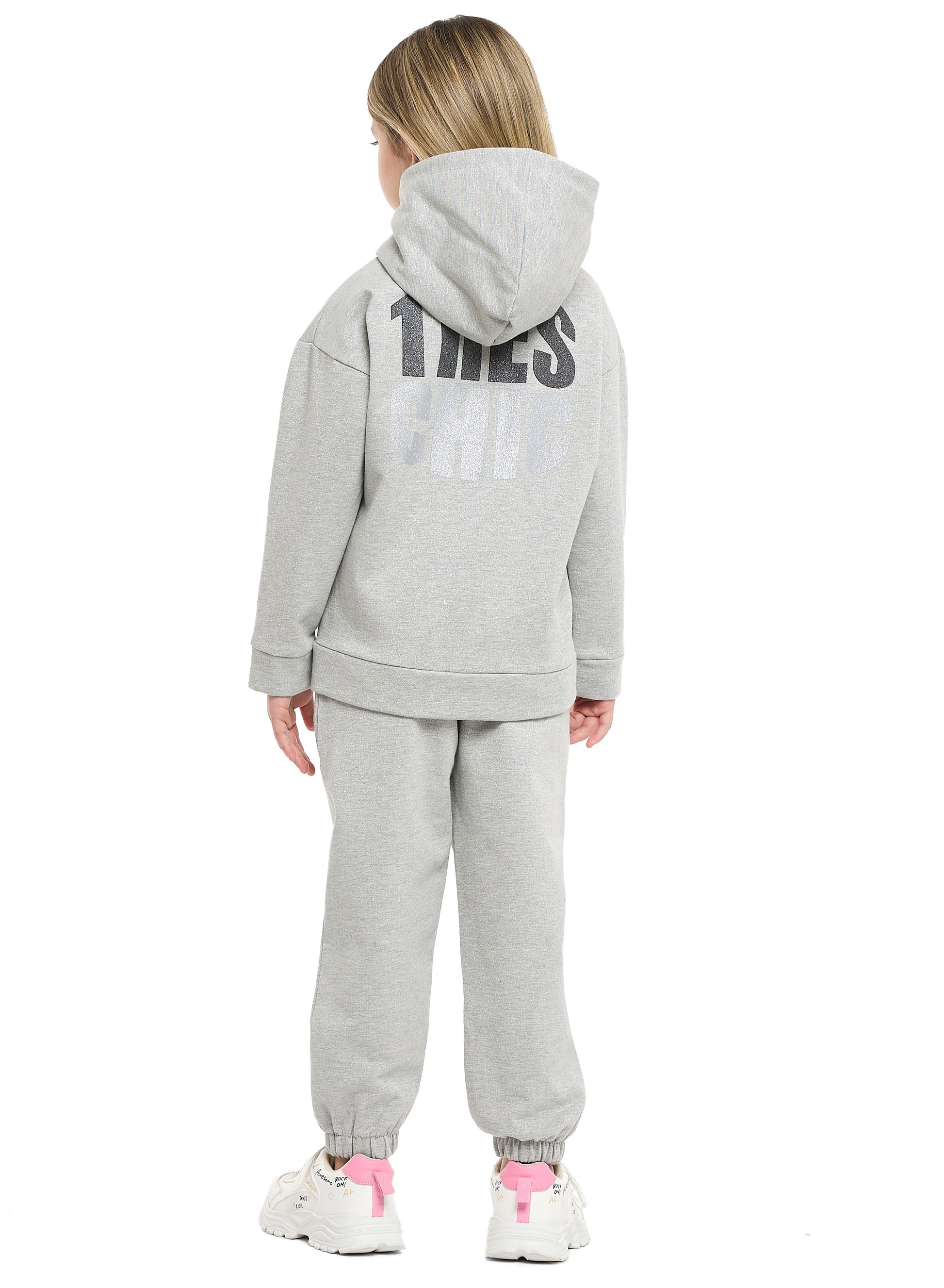 Girls Très Chic Reversible Sequin Fleece Set – Light Grey 2-Piece Outfit