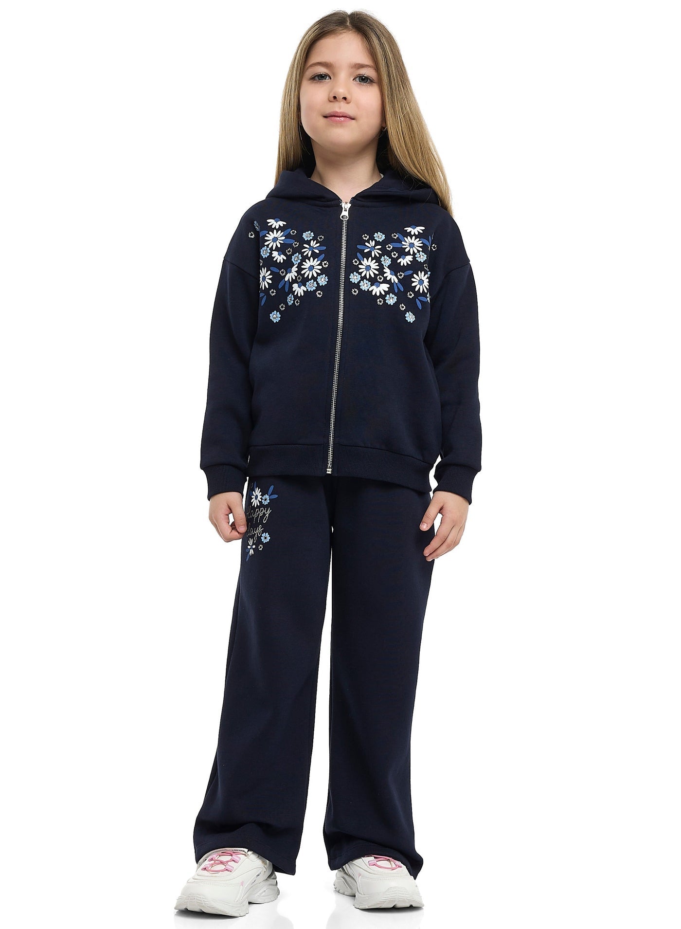Girls Floral Embroidered Fleece Tracksuit – Navy 2-Piece Set Ask ChatGPT