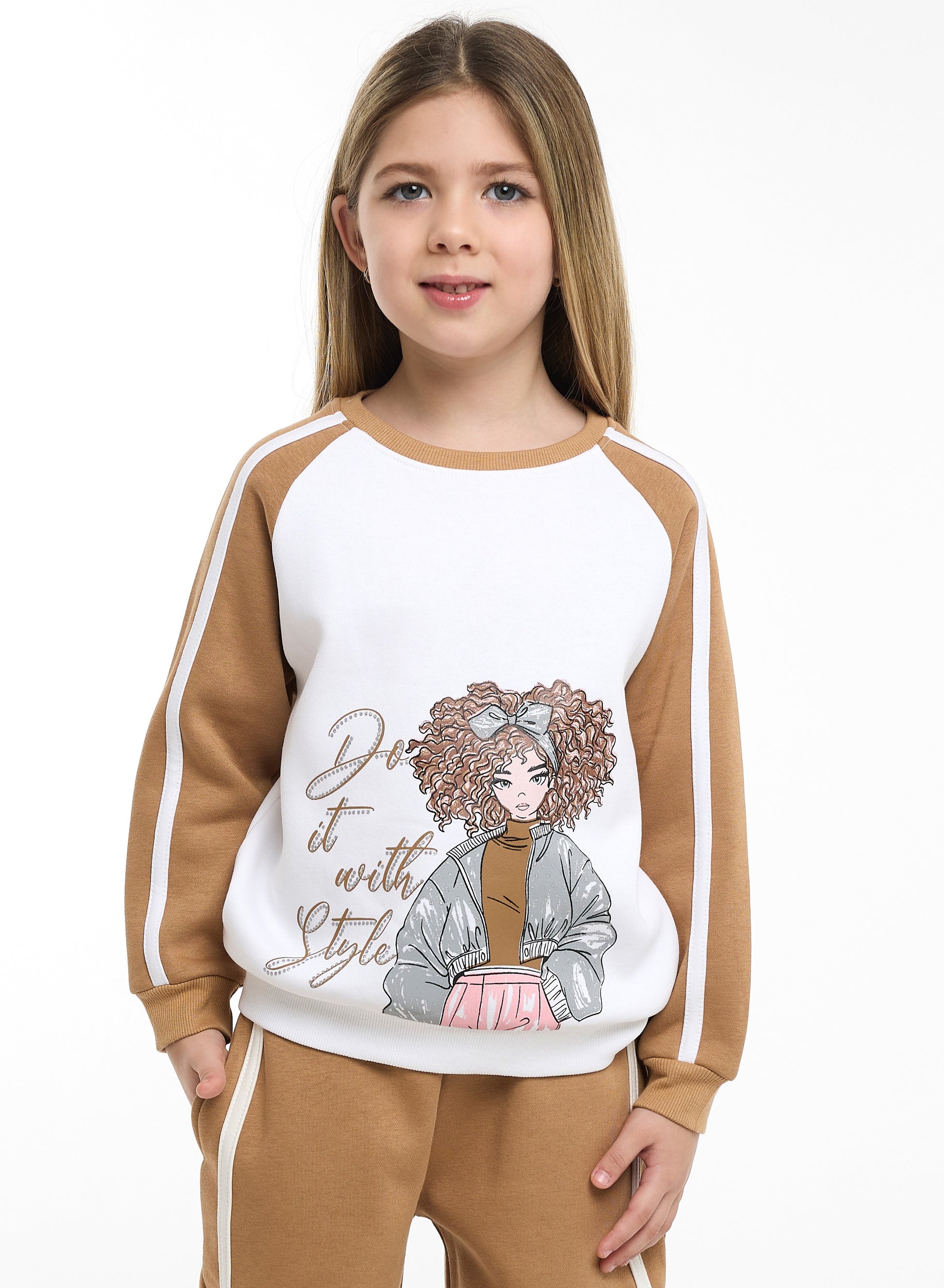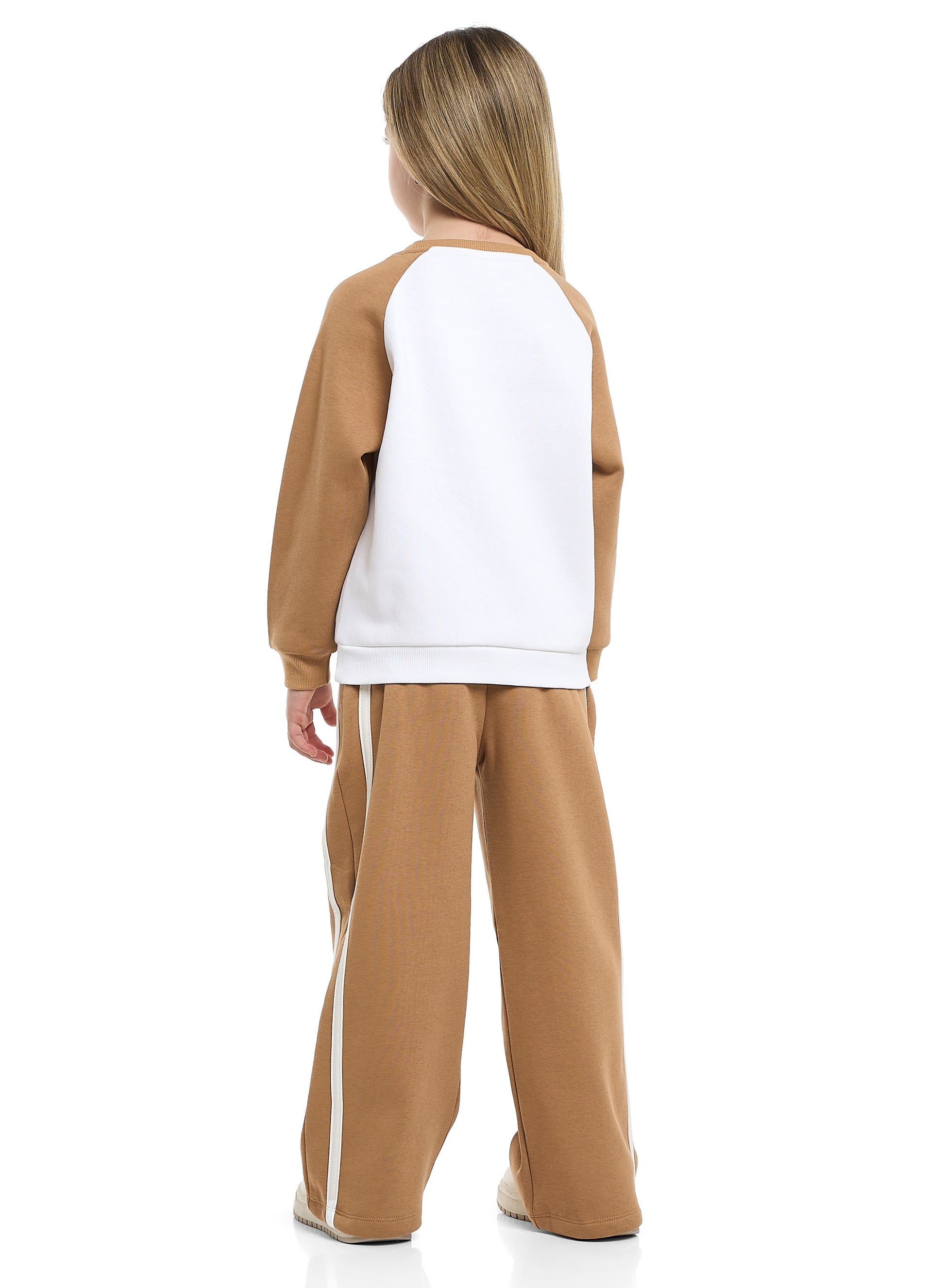 Girls Do It with Style Fleece Tracksuit – Cream & Brown 2-Piece Set