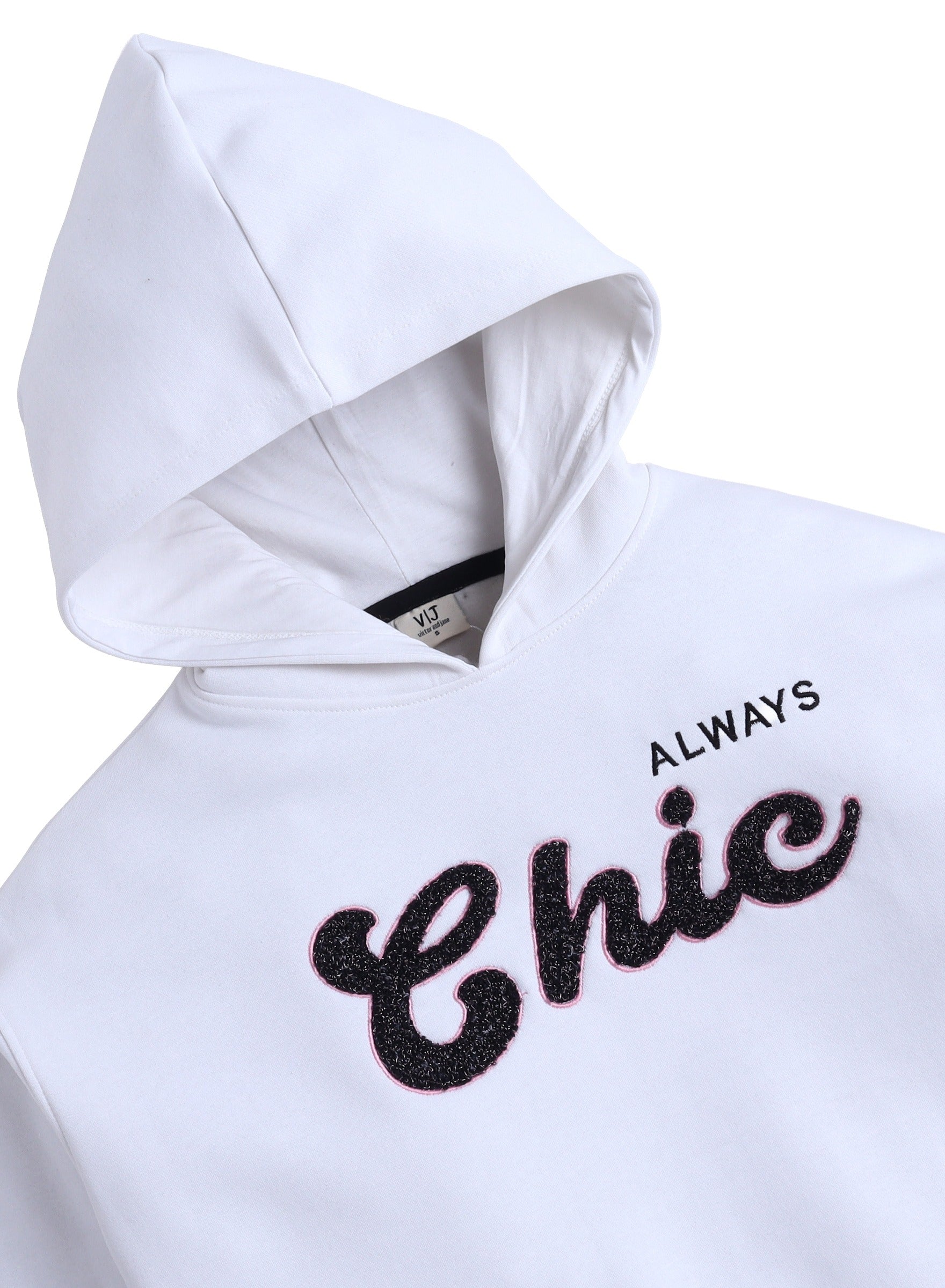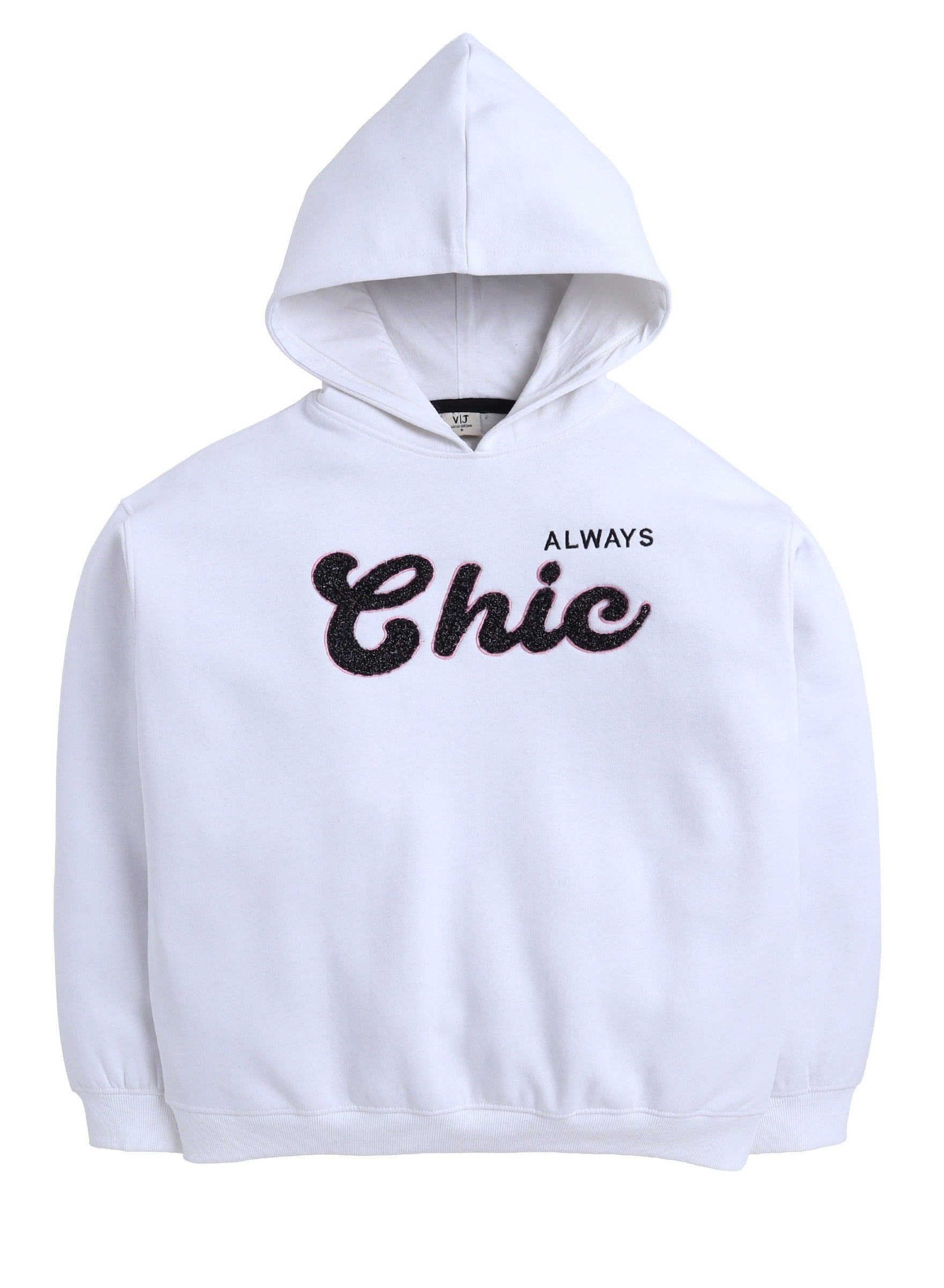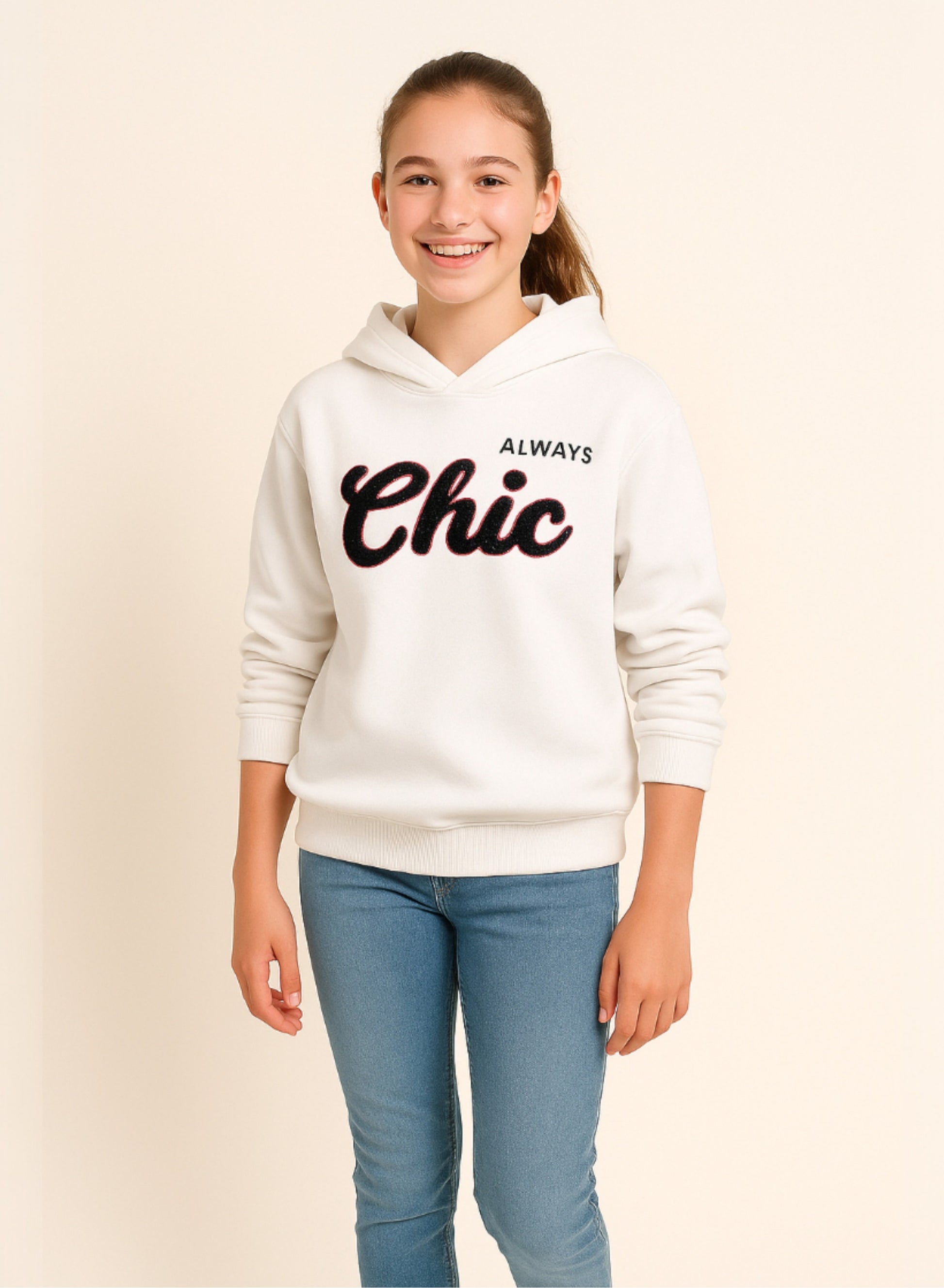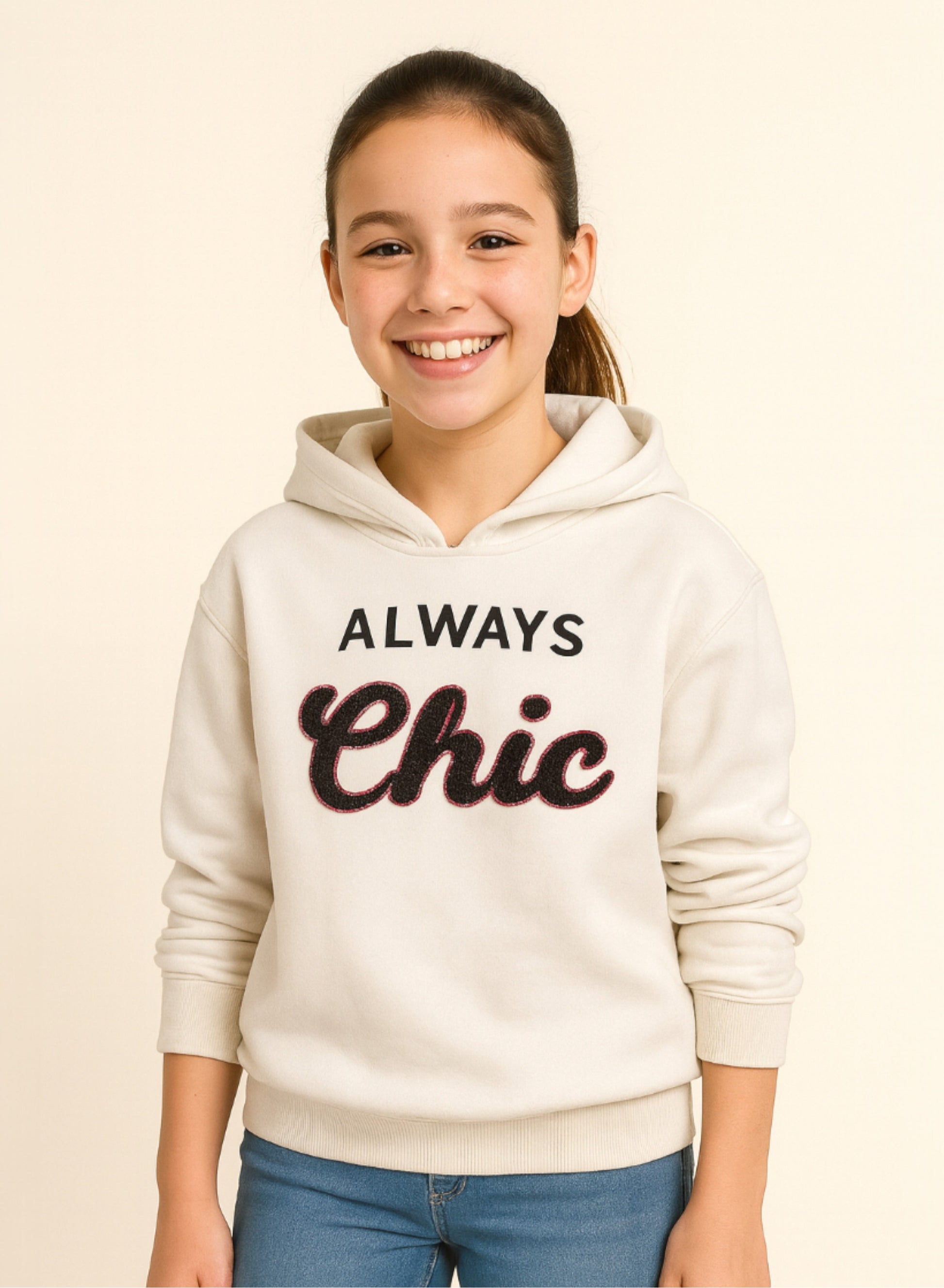“Always Chic” Hoodie for Girls – Off-White | 100% Cotton Fleece |