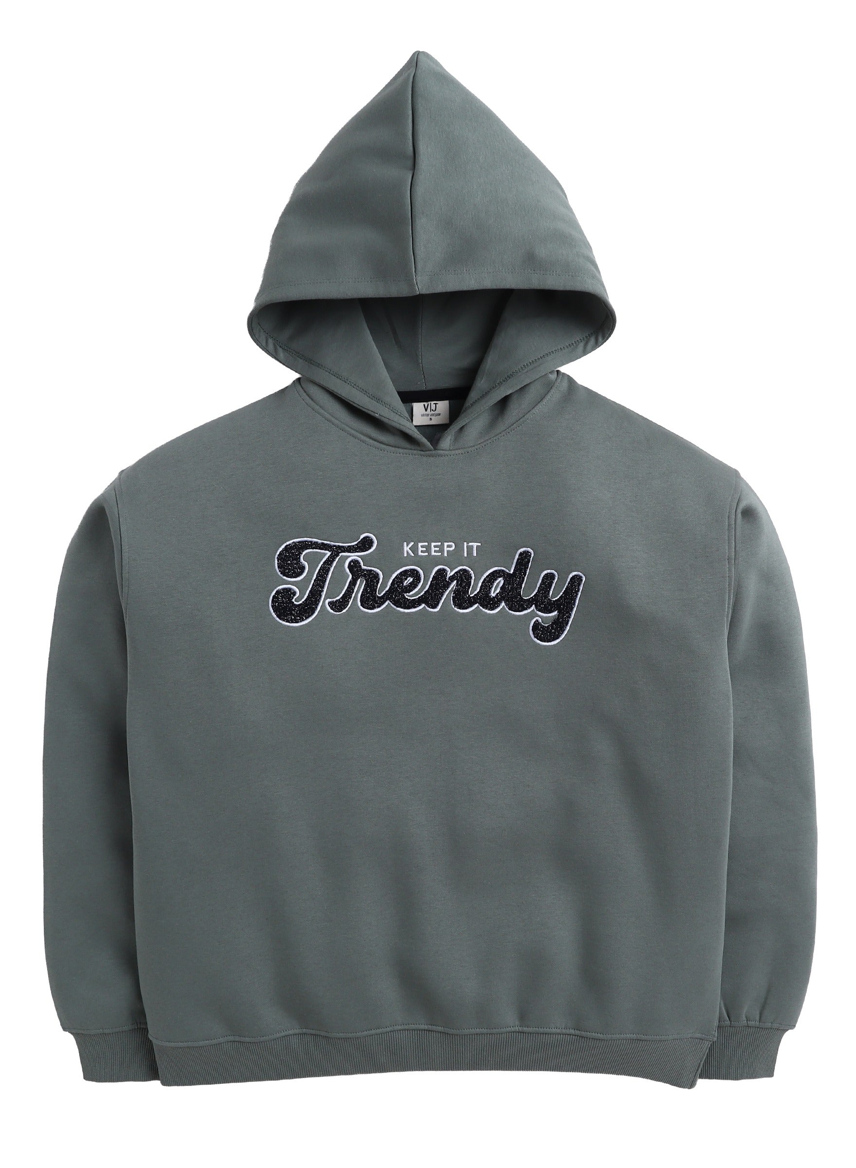 “Keep It Trendy” Graphic Hoodie for Girls – Teal Blue | 100% Cotton Fleece |