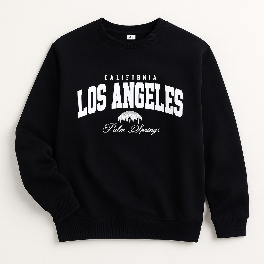 Motion-effect “LOS ANGELES” text printed across front and sleeves