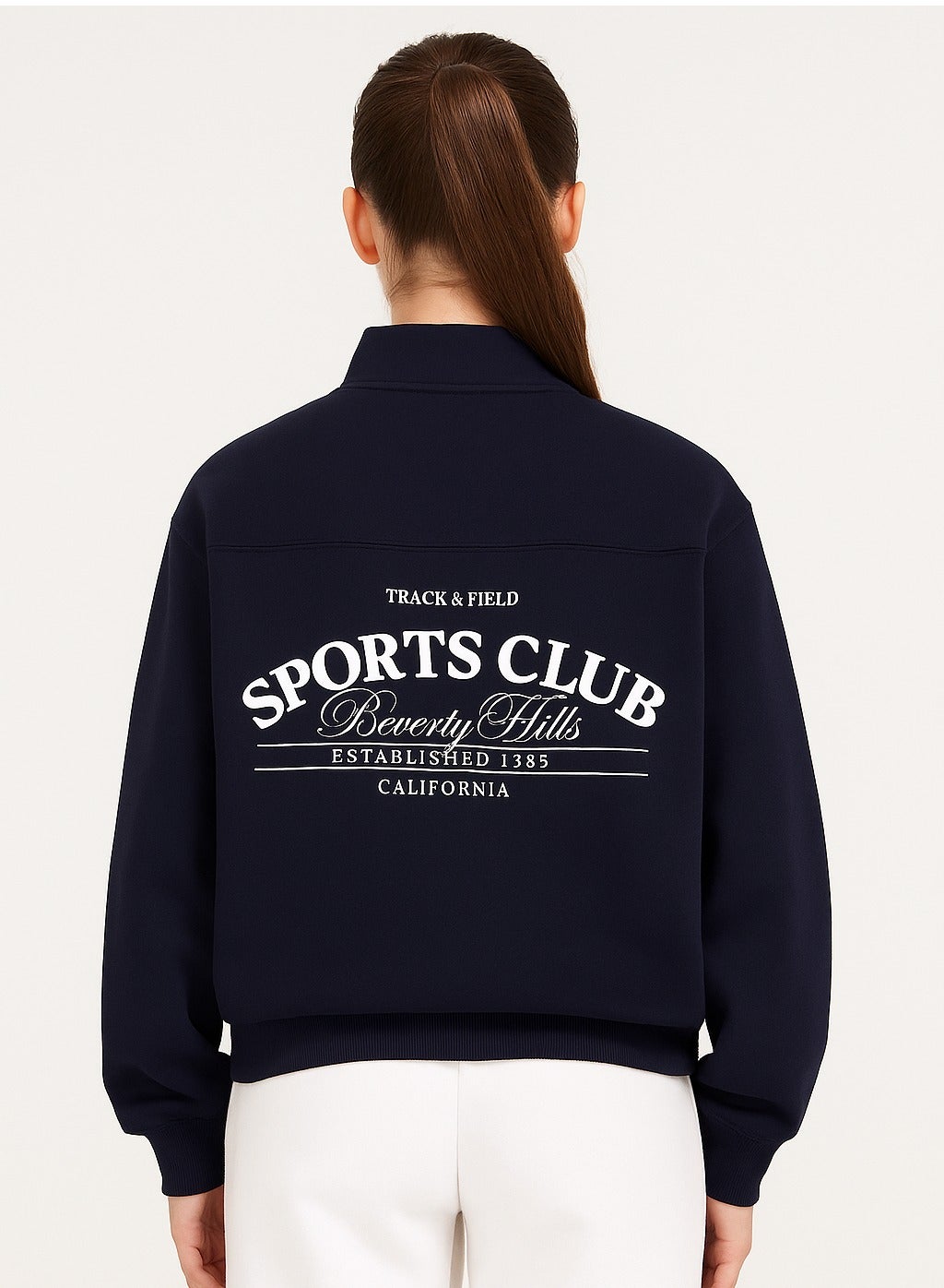 “Sports Club” Girls' Half-Zip Sweatshirt – Navy | 100% Cotton Fleece |