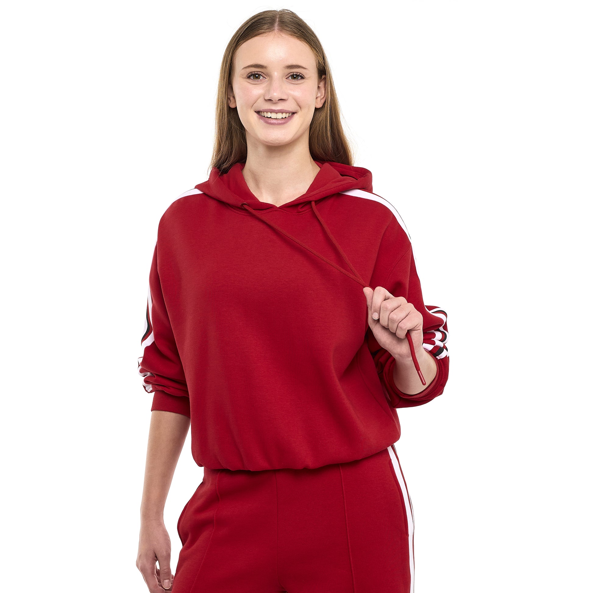 Hoodie: Elasticated hem for modern fit; adjustable hood drawcord