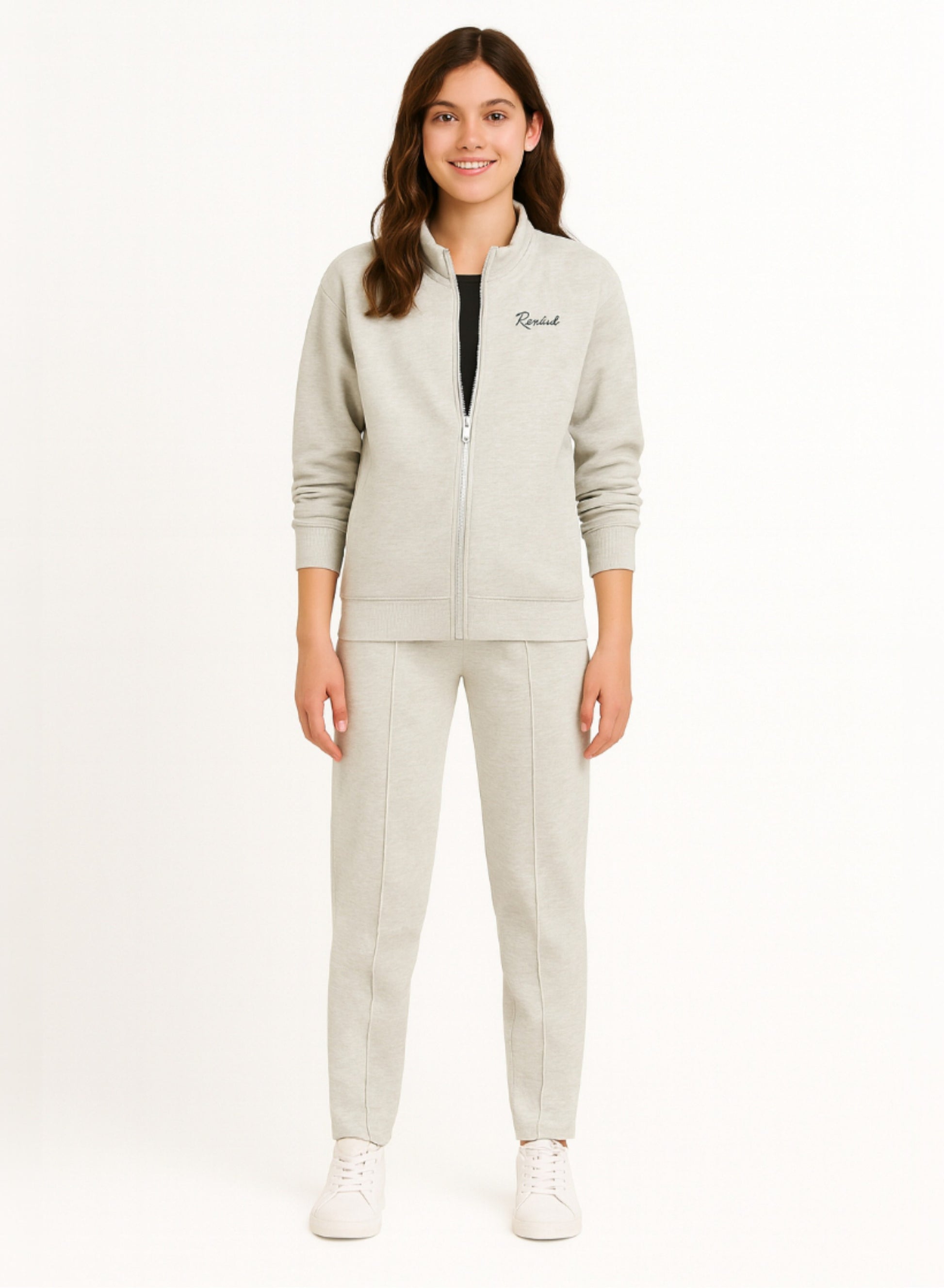 Girls’ Grey Striped Track Set – Zip-Up Jacket & Joggers