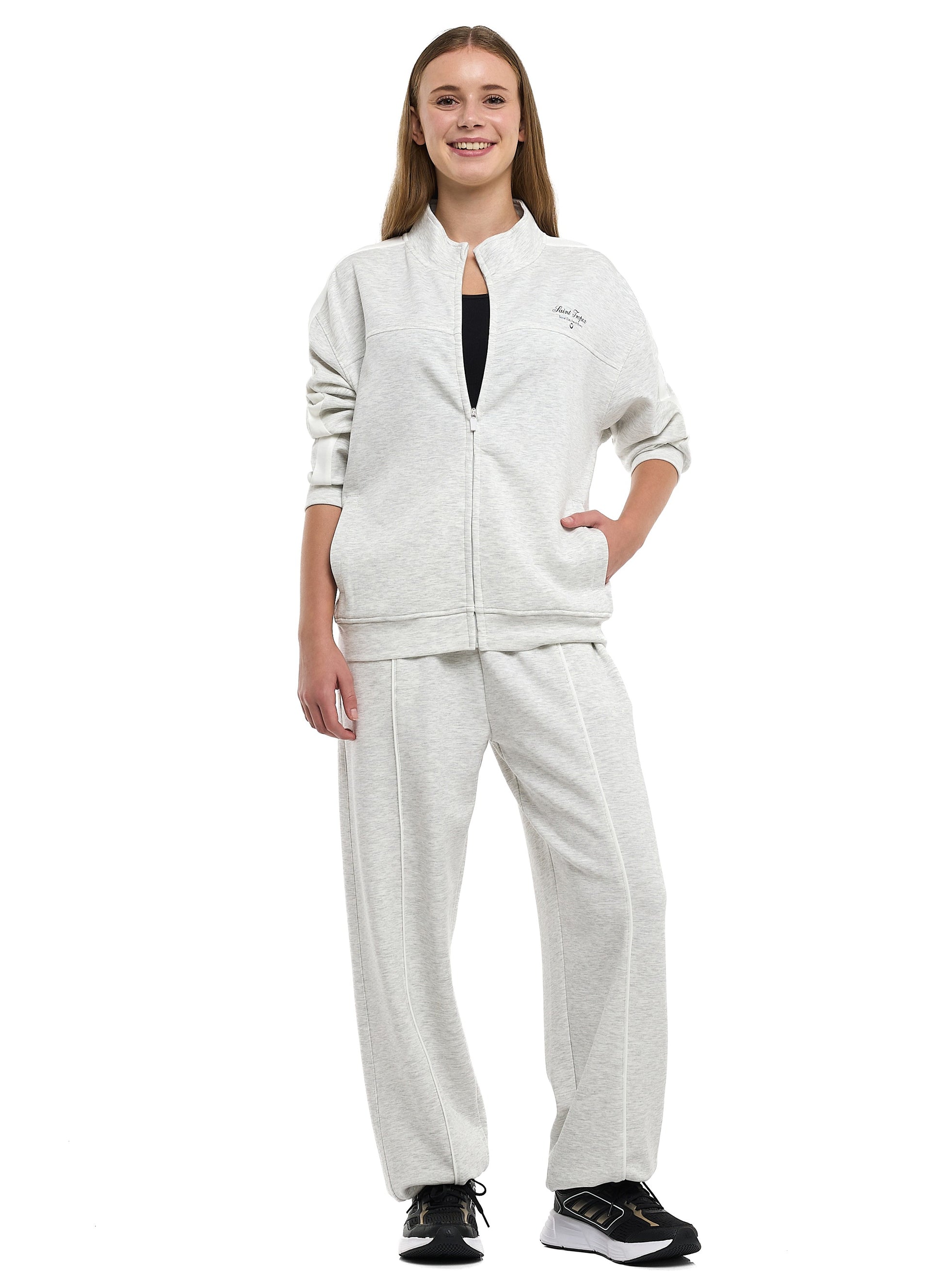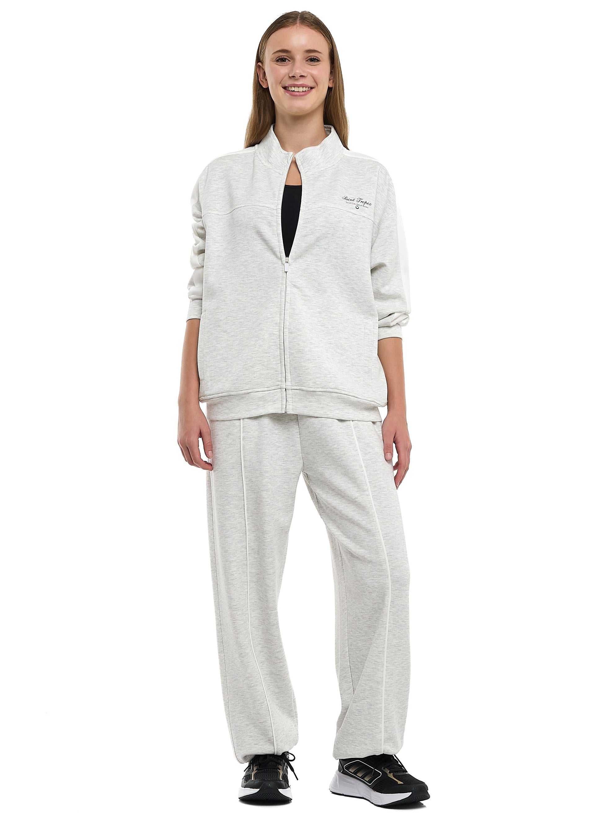 Ladies Grey Striped Track Set – Zip-Up Jacket & Joggers
