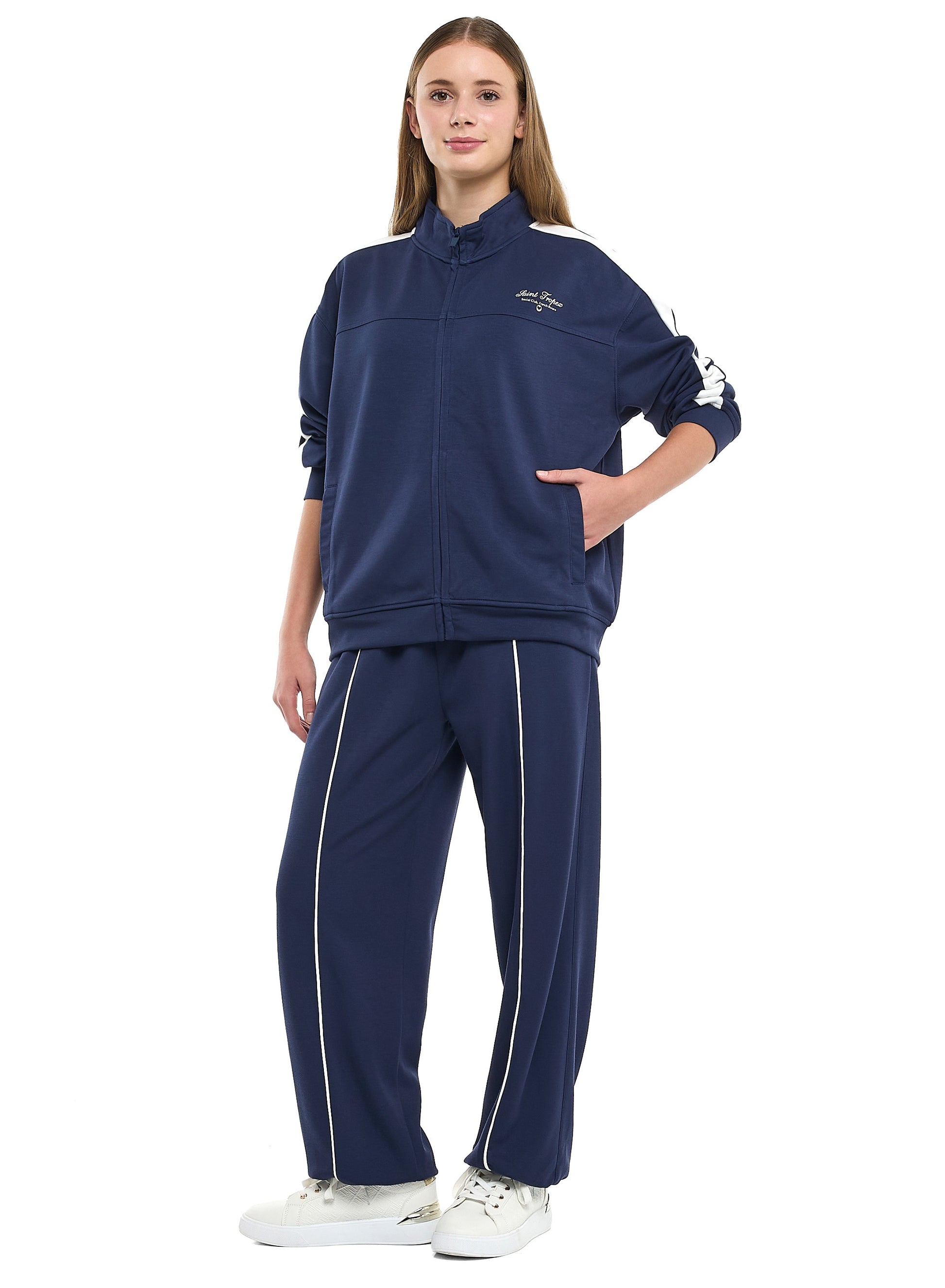 Ladies Navy Striped Track Set – Zip-Up Jacket & Joggers