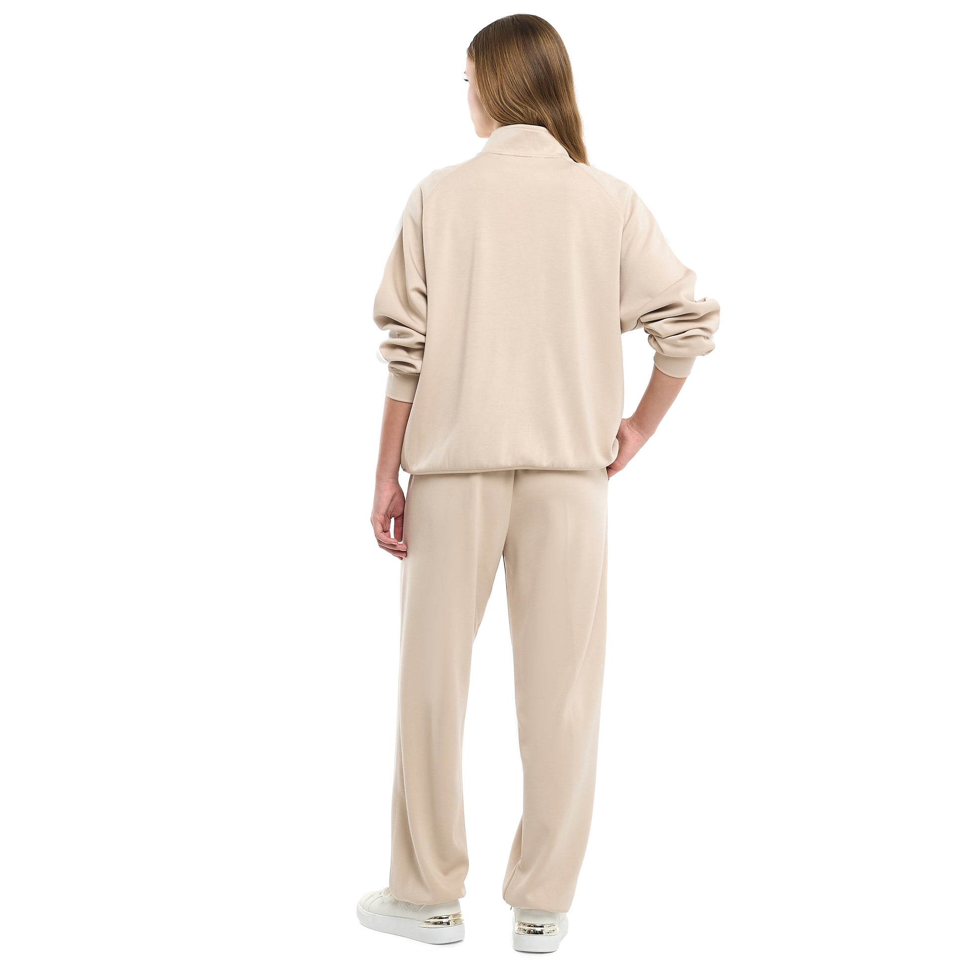 Girls’ Beige Contrast-Stripe Track Set – Zip-Up Jacket & Joggers