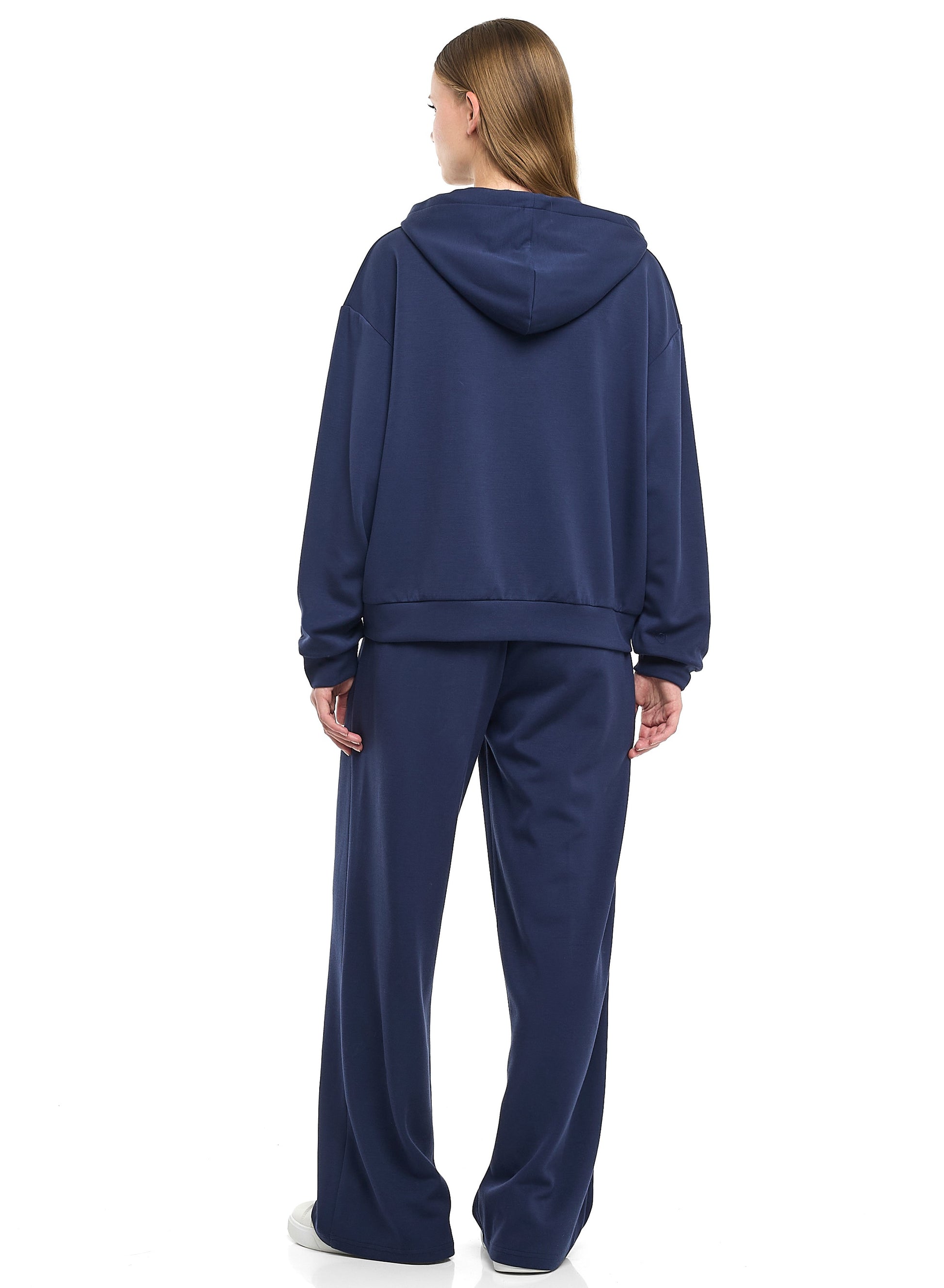 Ladies 2 Piece Set- Navy Zip-Up Hoodie & Wide-Leg Trousers Set