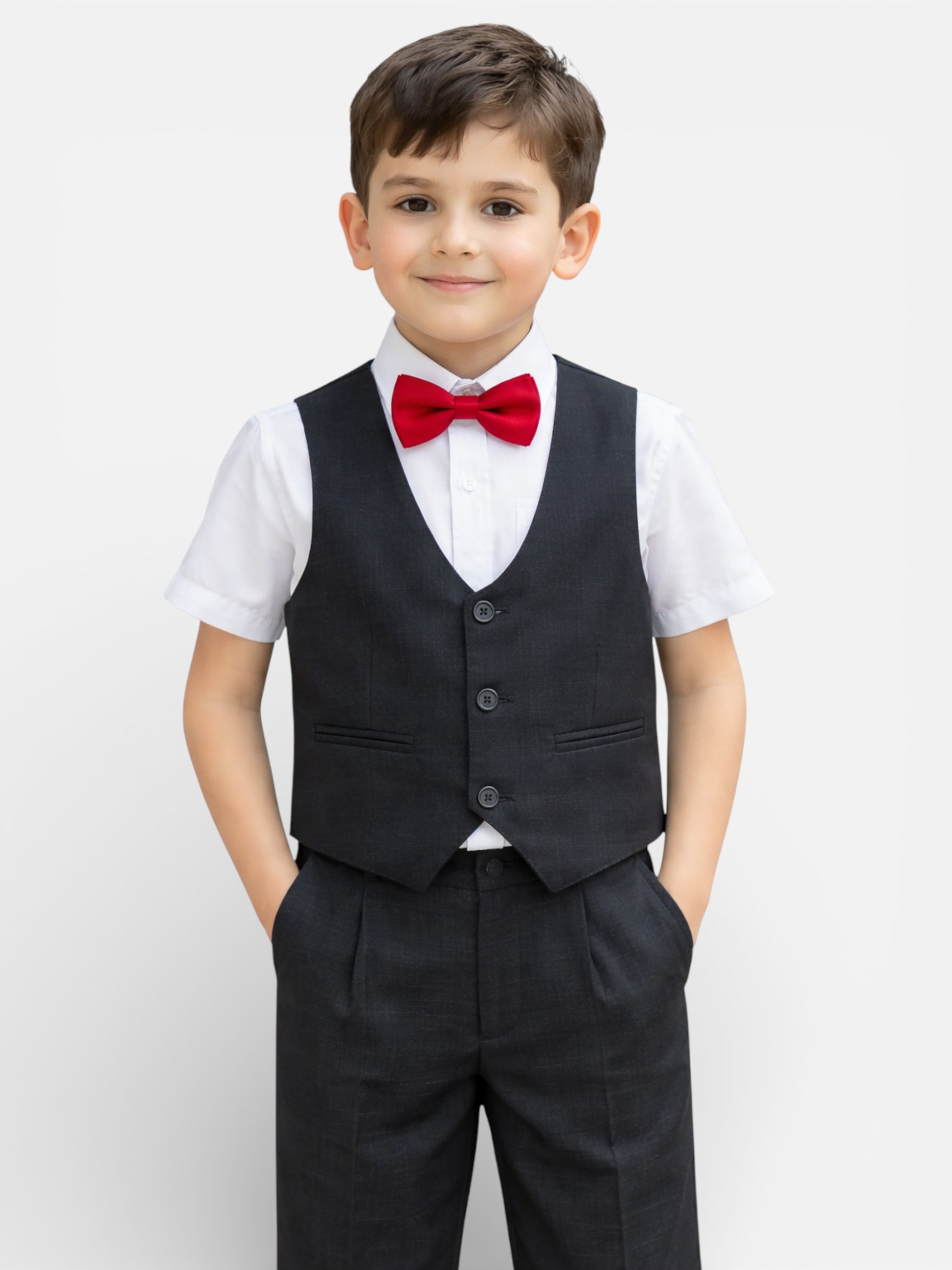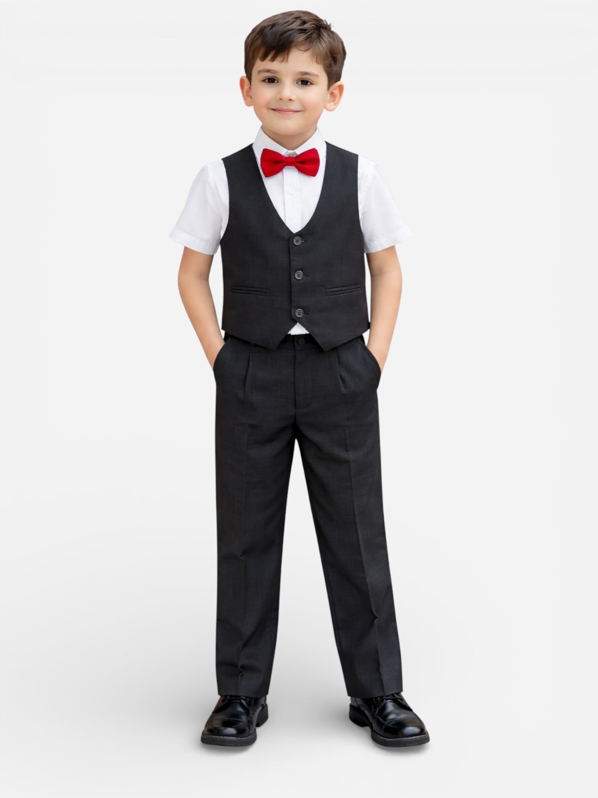 Boys 4 Pc Set Black Waistcoat, Shirt, Trousers & Bow Tie Set (3 Years–8 Years)
