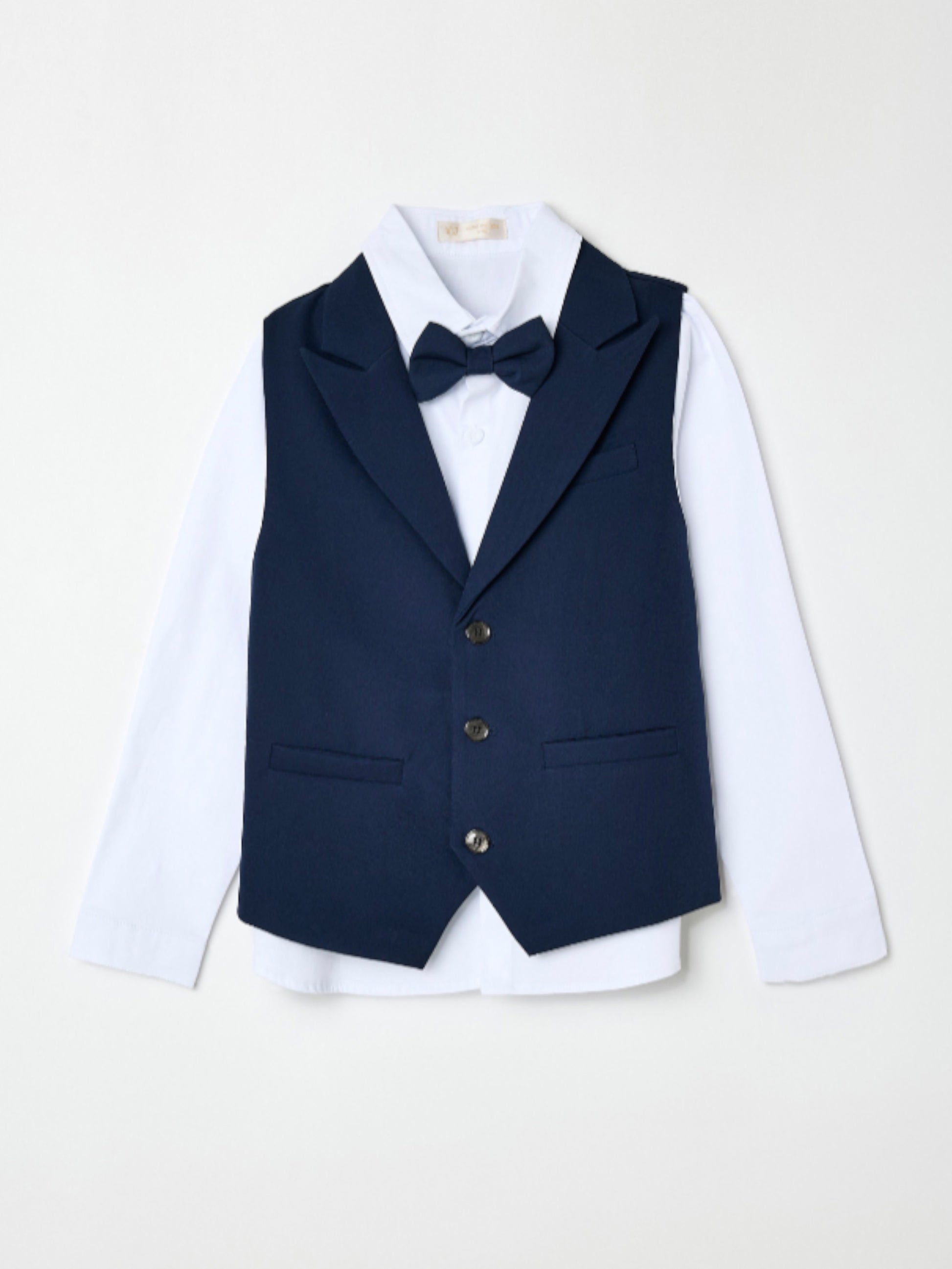 Boys 4 Pc Set Blue Waistcoat, Shirt, Trousers & Bow Tie Set (3 Years–8 Years)